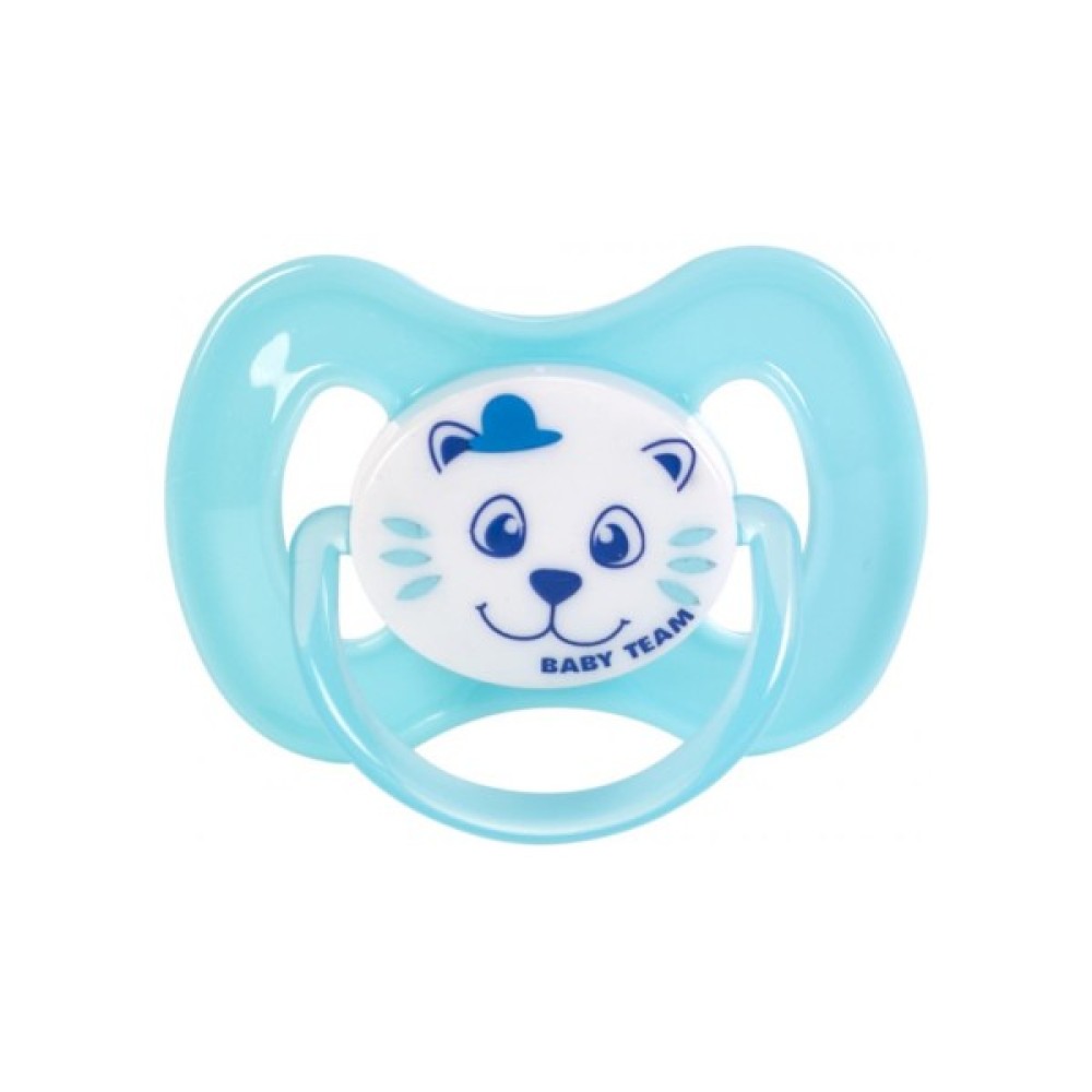 Пустушка силіконова Baby Team (Бебі Тім) задовольняє природний рефлекс смоктання і тренує губні м'язи і щелепи, грає важливу роль в розвитку мовних навичок і навичок прийому їжі.
