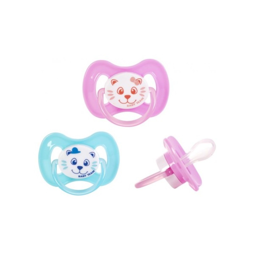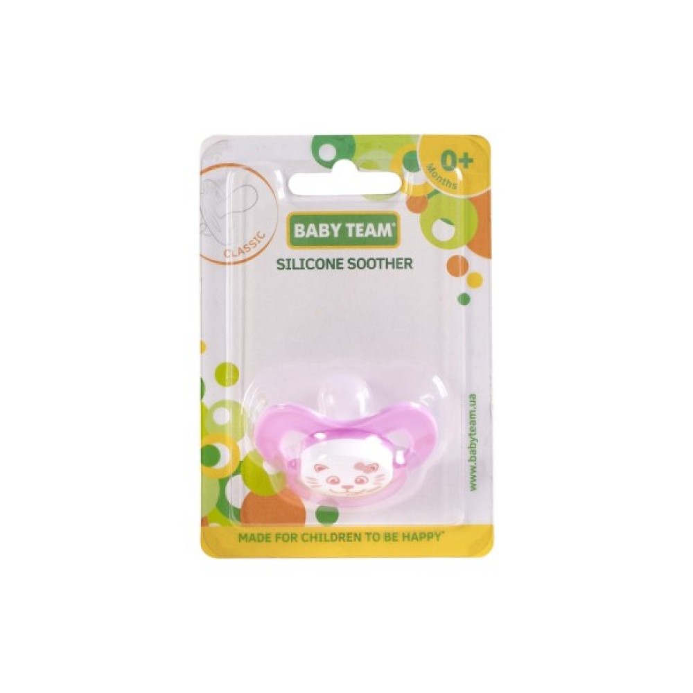 Пустушка силіконова Baby Team (Бебі Тім) задовольняє природний рефлекс смоктання і тренує губні м'язи і щелепи, грає важливу роль в розвитку мовних навичок і навичок прийому їжі.