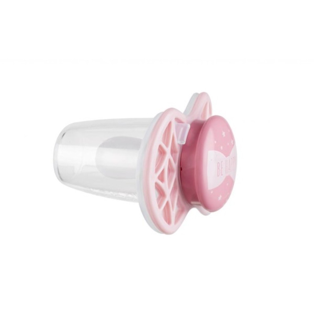 Пустушка симетрична Nuvita NV7065 Air55 Cool 0m + "BE HAPPY" колір "рожевий кварц". Пластина соски на 55% складається з повітря забезпечуючи майже повну аерацію області навколо рота, уникаючи скупчення слини, яка може подразнювати шкіру. Захисний ковпачок для соски для підтримки чистоти соски і стерилізації в мікрохвильовій печі простим додаванням води.