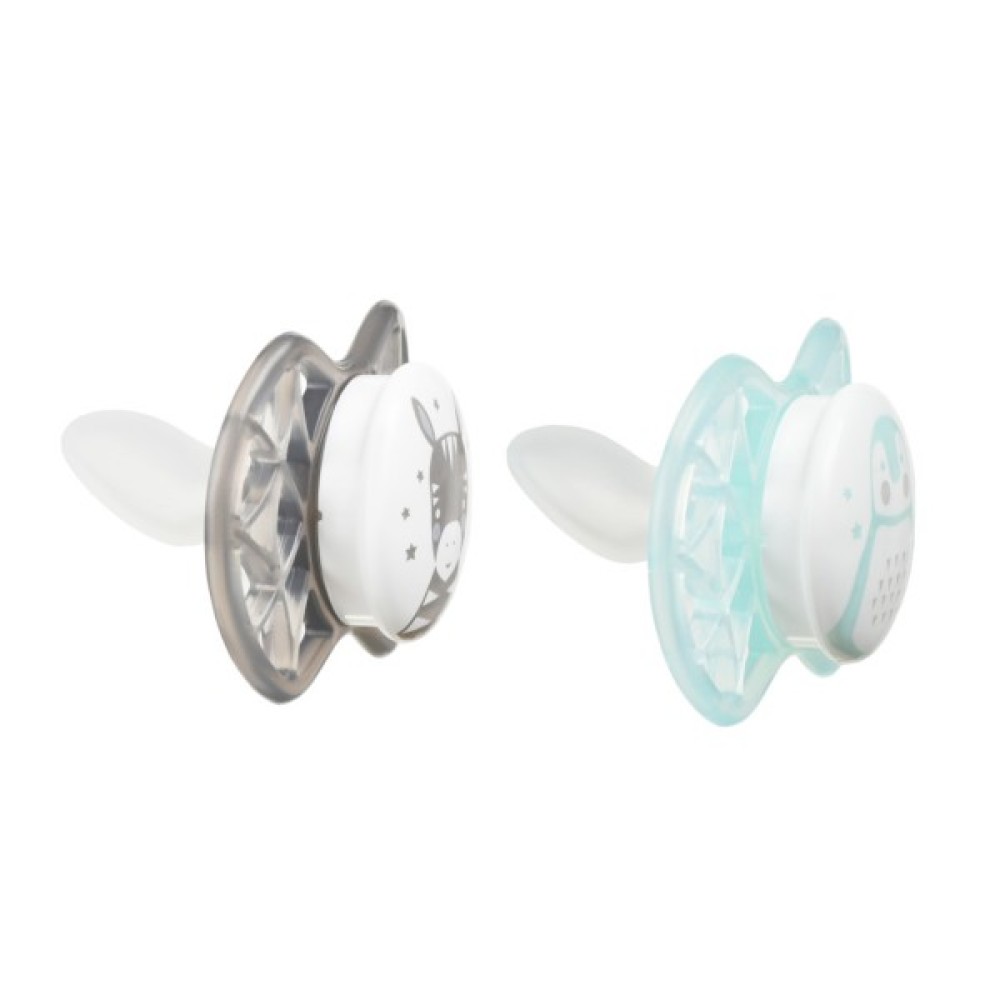 Пустушка Air55 Explore ортодонтична. Пластина соски на 55% складається з повітря забезпечуючи майже повну аерацію області навколо рота, уникаючи скупчення слини, яка може подразнювати шкіру.