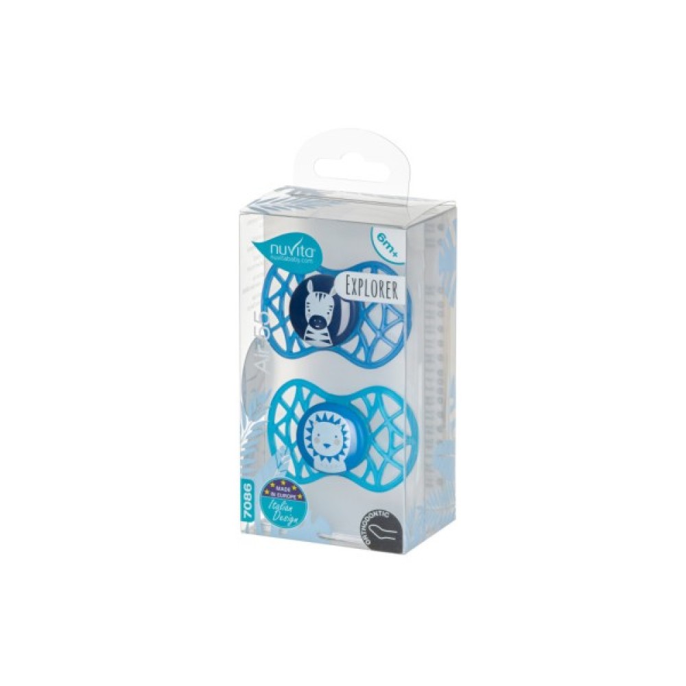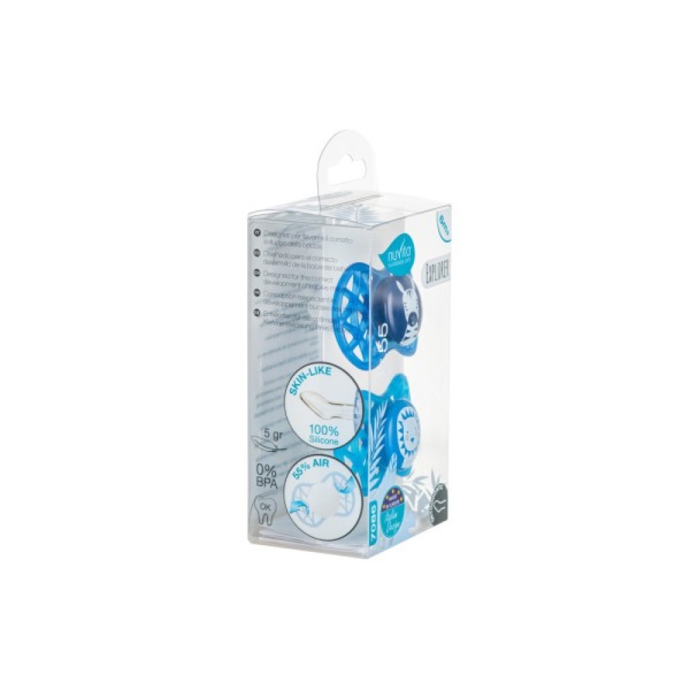 Nuvita NV7086 Air55 6m+. Пластина соски на 55% складається з повітря забезпечуючи майже повну аерацію області навколо рота, уникаючи скупчення слини, яка може подразнювати шкіру.