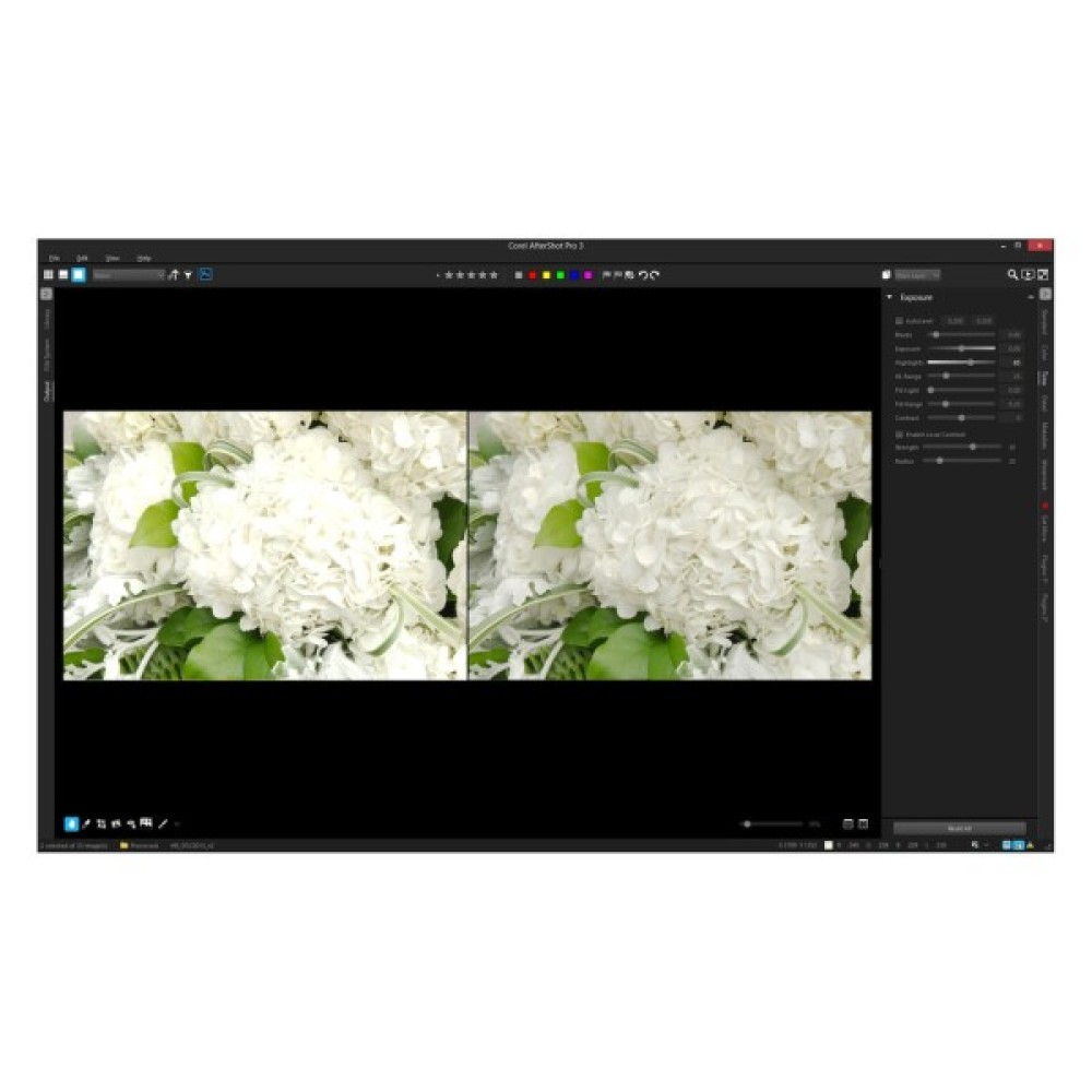 Програмне забезпечення Corel AfterShot Pro пропонує прості та гнучкі інструменти керування фотографіями. Corel AfterShot Pro підтримує ОС Windows, Mac OS та Linux, дозволяє виконувати редагування без втрати якості та проходити через весь цикл роботи з файлами RAW. Систематизуючи знімки в папках і каталогах, користувачі можуть швидко знаходити зображення за допомогою великих засобів обробки метаданих, які уможливлюють пошук за налаштуваннями камери, ключовими словами, тегами та іншими параметрами. Передбачені функції вибіркового редагування, точного налаштування та вільної зміни фотографій. Результати роботи легко виводяться для розміщення в альбомах або веб-сайтах, а також для демонстрації клієнтам.