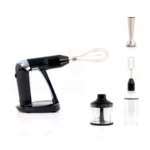 У комплекті ви отримаєте 4 насадки: занурювальну насадку для змішування, подрібнювач із чашею 700 мл з гострими лезами, насадку для збивання і мірну склянку об’ємом 700 мл. Кожна з насадок забезпечує максимальну ефективність для будь-яких завдань, від змішування до подрібнення і збивання.