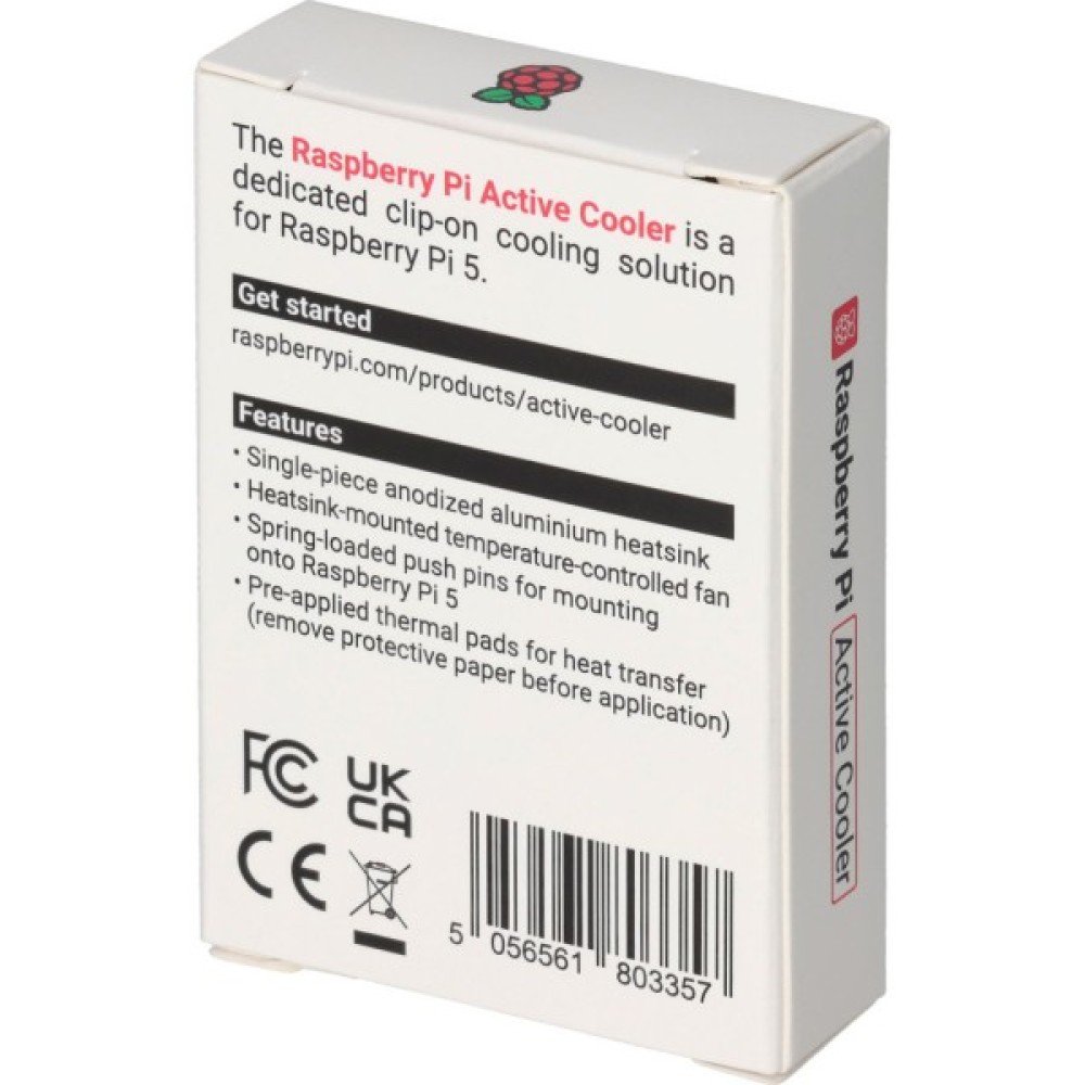 Активний охолоджувач поєднує в собі великий металевий радіатор із високоякісним вентилятором із змінною швидкістю, який живиться та керується через роз’єм вентилятора на Raspberry Pi 5, прикріплений до плати за допомогою пружинних шпильок у спеціальній парі монтажних отворів.