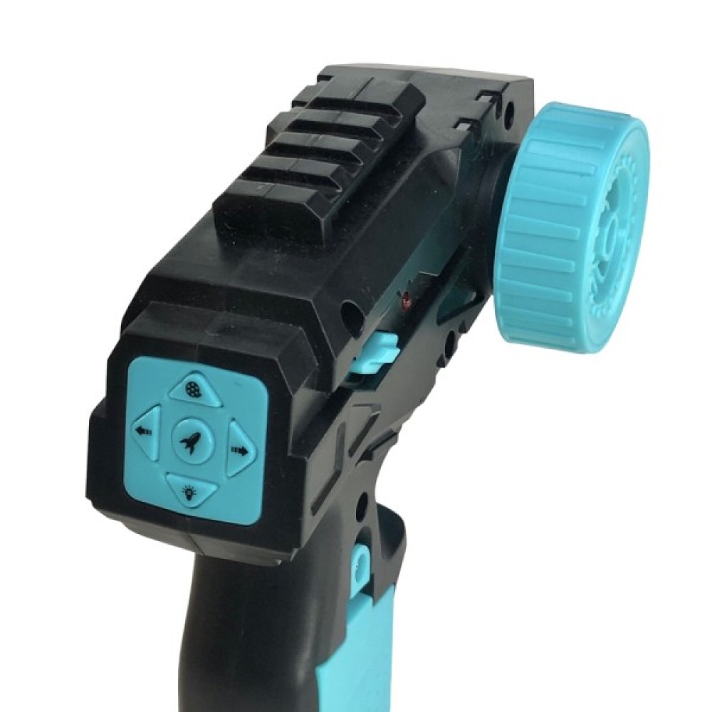 Вежа, що стріляє, знімна, її можна встановити на пульт дистанційного керування й отримати бластер, а машинка може їздити й перевозити на собі мішень.