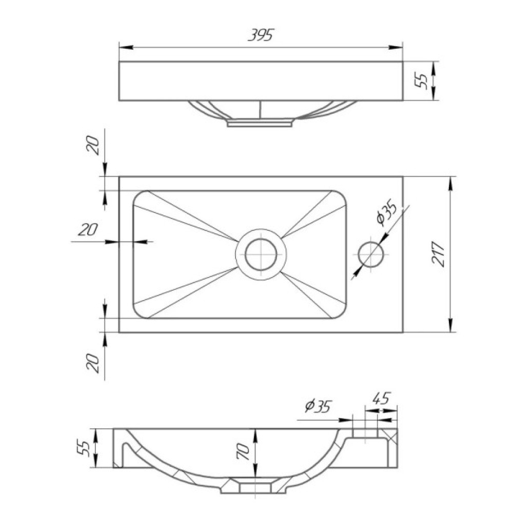 Габарити раковини (ШхГхВ) 39.5 x 21.7 x 5.5 см