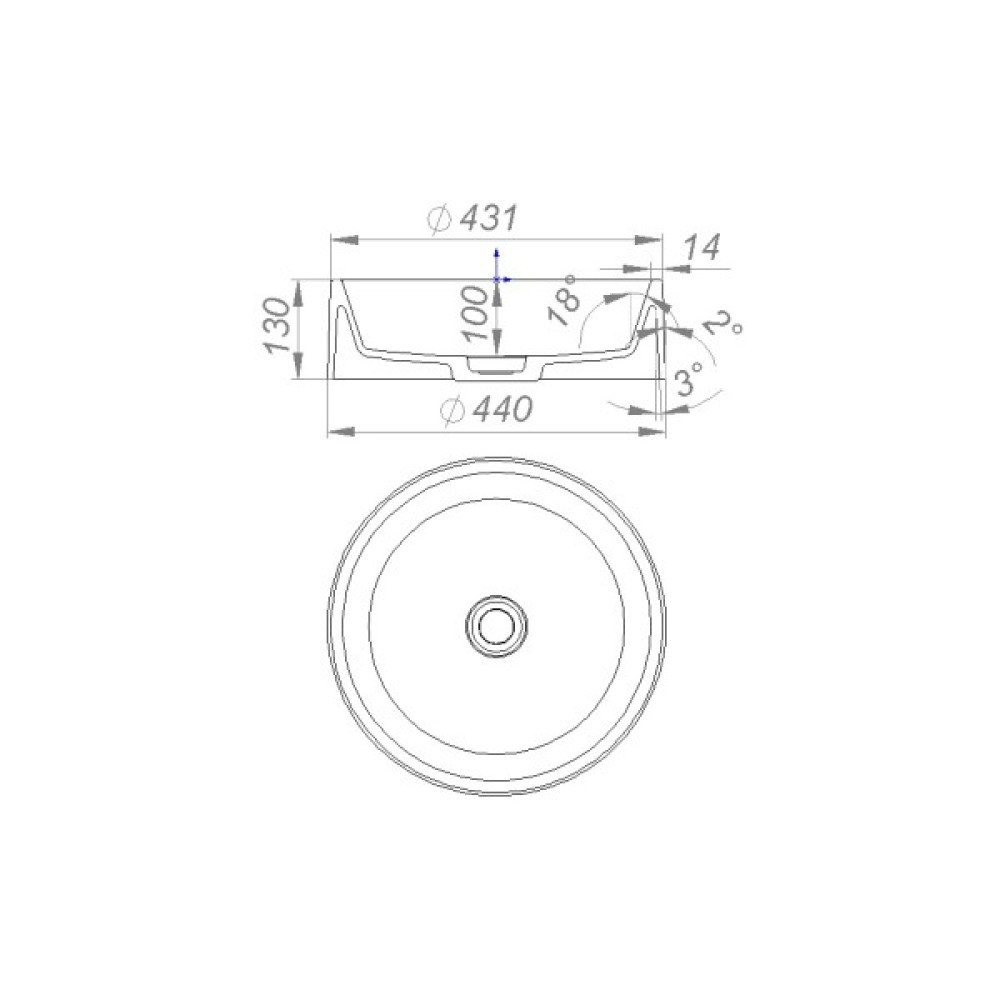 Габарити раковини (ШхГхВ) ø 43.1 х 13 см