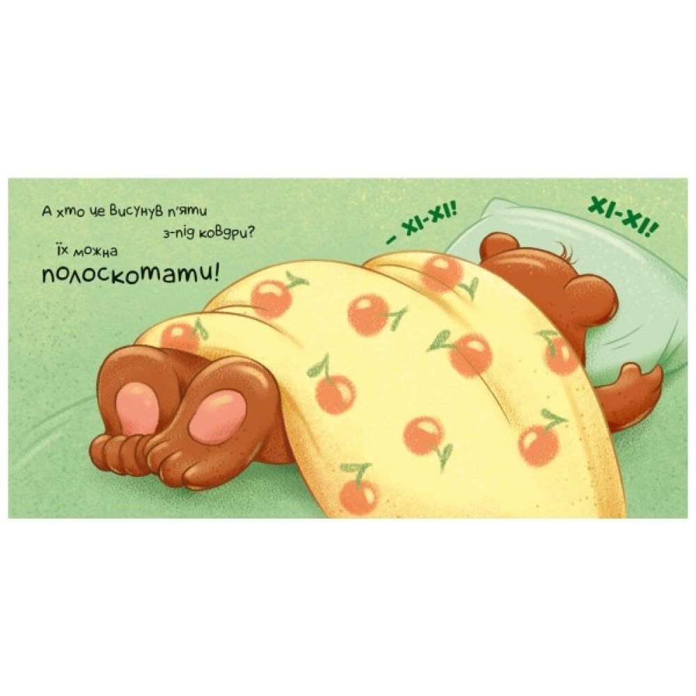 Відповідаємо! Контактну книжку слід не просто читати, з нею потрібно гратися! Дитина братиме активну участь в історії та буде взаємодіяти з головним героєм — ведмедиком. Малюк виконуватиме прості дії, до яких спонукає сюжет: перегортаючи сторінку, накриє ведмедика ковдрою, дивлячись на картинки, «прочитає» ведмедику казку, заколихає, погойдуючи книжку, а потім побажає ведмедику добраніч. Водночас малюк розвиватиме емоційний інтелект, співчуття й впевненість у собі та своїх силах.
