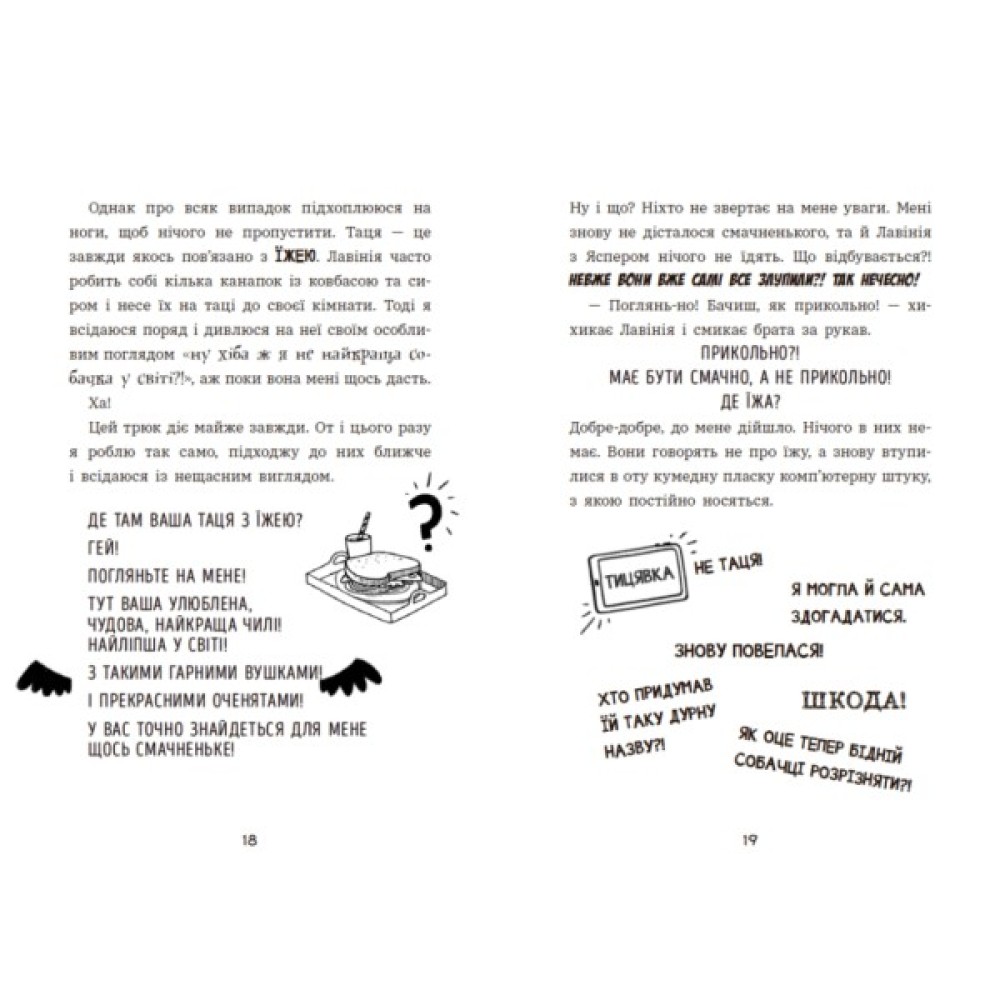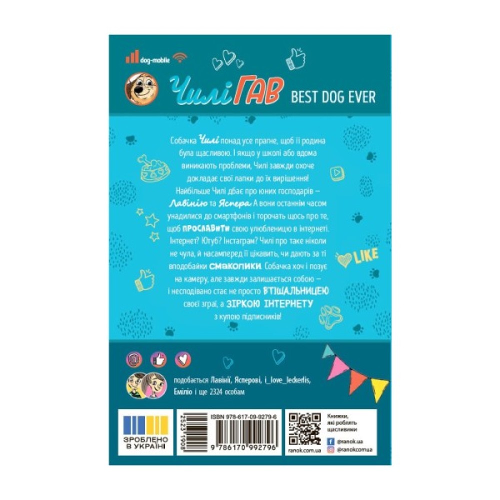 Ця книжка популярної німецької авторки Сабіне Цетт розпочинає серію захопливих історій про собаку на ім’я Чилі. Вона мешкає у великій родині, чи то пак у гамірній людській зграї, у якій є Мама-Хазяйка, Тато-Хазяїн і троє дітей — школярі Лавінія і Яспер та маленький Кіліан. Як і кожна собака, Чилі мріє, щоб її господарі були щасливими. Найбільше, звісно, переймається проблемами дітей. А їх зараз захопила ідея зробити Чилі зіркою інтернету. Що ж, доведеться Чилі тепер стильно вбиратися й гарненько позувати на камеру для ютубу й інстаграму! Дітей молодшого шкільного віку неодмінно потішать вибрики Чилі й можливість побачити життя однолітків, які, до речі, щиросердно діляться з читачами своїми щоденниковими записами.