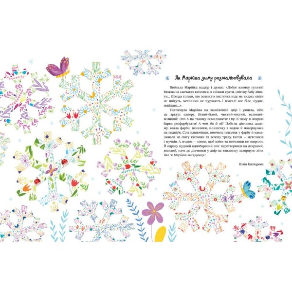 Як чудово читати казки зимовими вечорами! І навіть якщо за вікном сльота, зануритися у сніжну атмосферу нескладно. Просто розгорніть цю книжку — у ній досхочу снігу й морозного повітря, доброти і любові! Казки невеличкі, тому дитина не втратить увагу й легко дослухає історію до кінця. А якщо відрахувати 26 днів до свята й читати по казці щовечора — книжка перетвориться на адвент-календар із зимовими історіями! Наприкінці ви знайдете віршики про зимові місяці, які можна вивчити й розповісти Миколаю.
