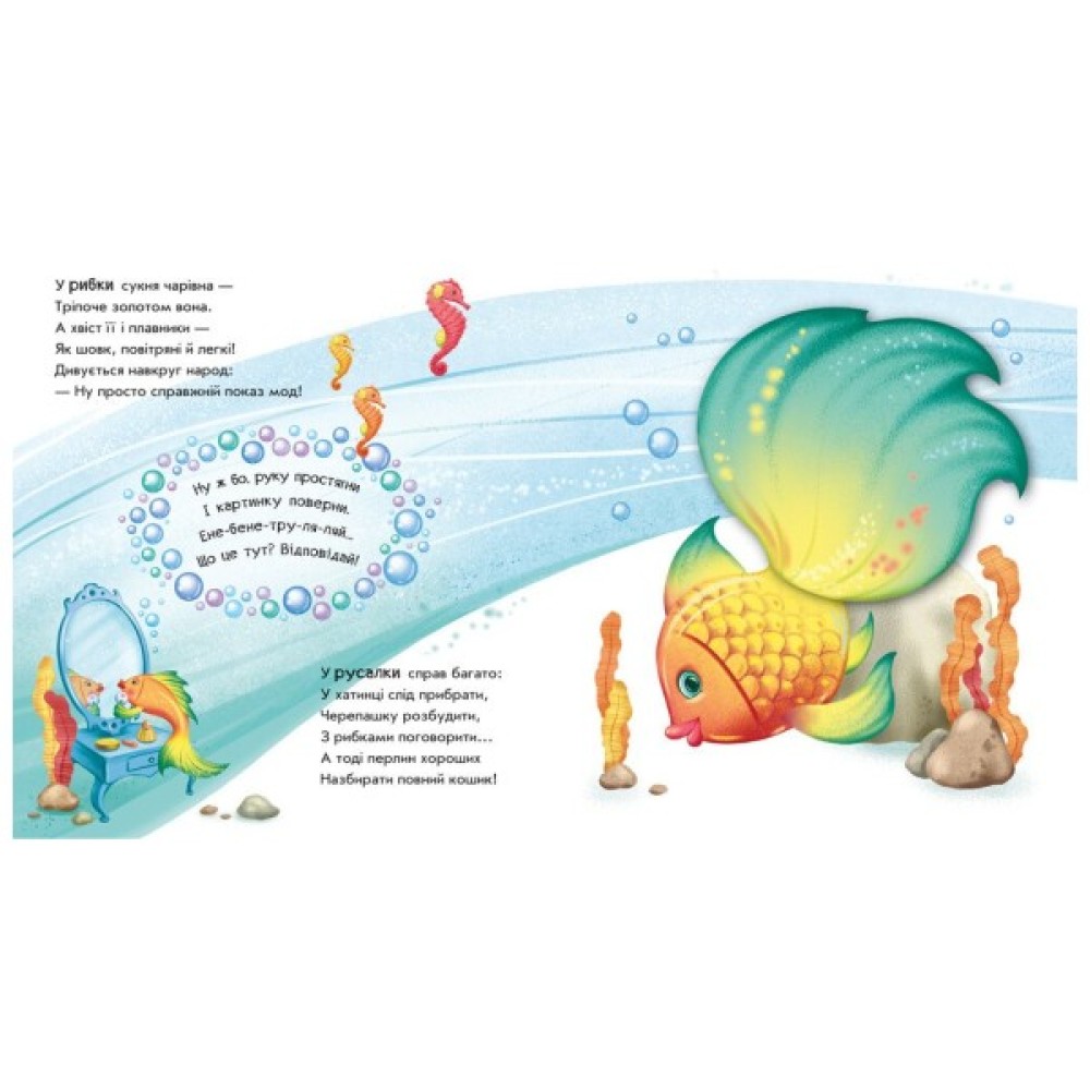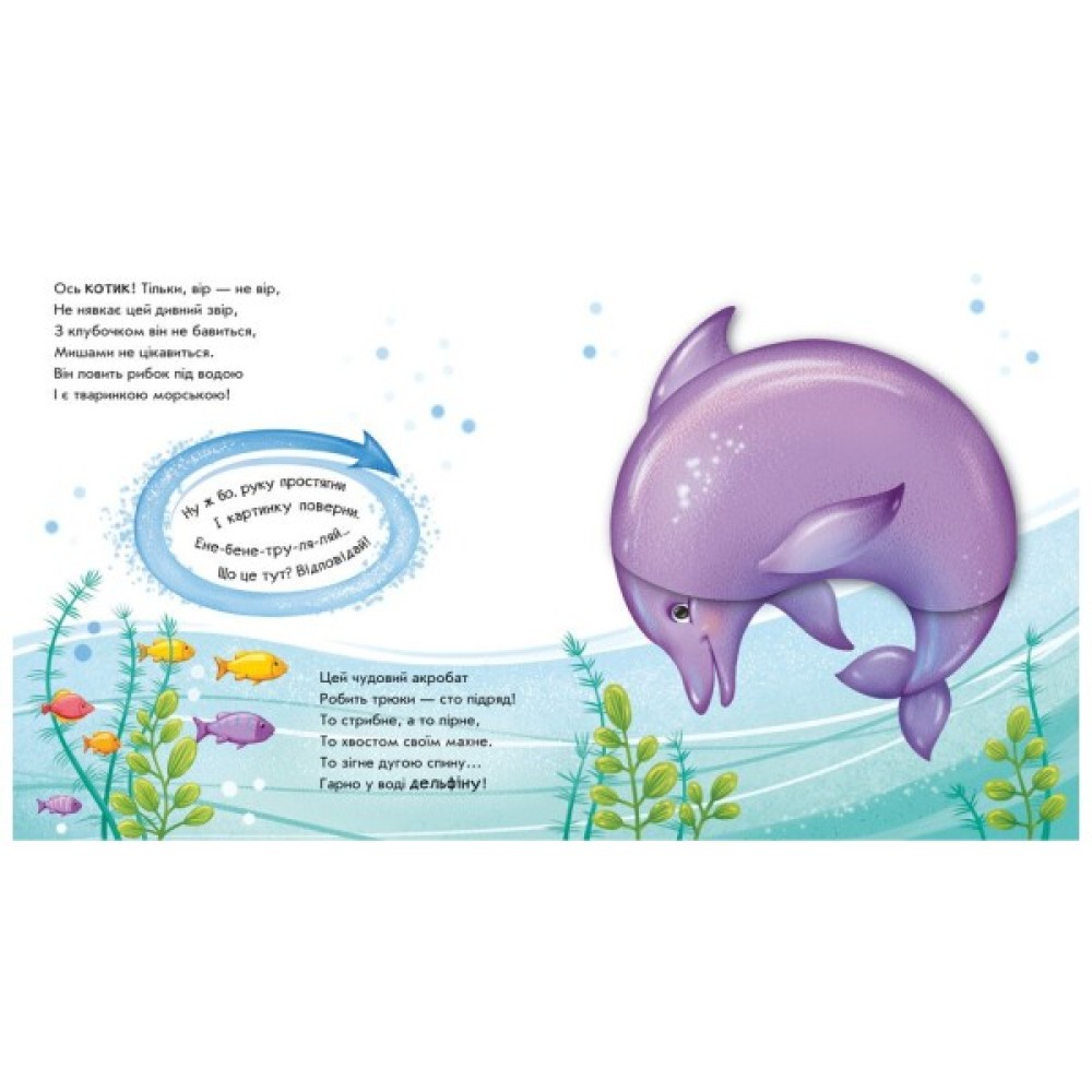 Ці незвичайні книжки-іграшки запрошують малюка пограти у фокусника-чарівника. Варто лише сказати чарівні слова та обернути картинку, і злюка-принцеса перетвориться на красуню-троянду, млин — на пароплав, а кошик з фруктами — на черепашку.