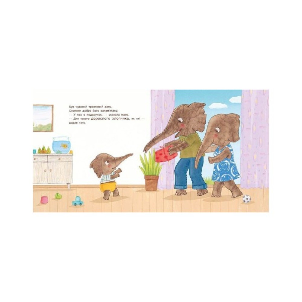 Маленьке Слоненя одержує цікавий подарунок від мами й тата. Але ніяк не збагне, що з ним робити. Малюк, як може, випробовує новенький «пі-пі-ка-ка-горщик». Носить як капелюшок від дощу. Пробує пити з нього, як із чашки. Навіть хоче переселити туди свою рибку. Та як тільки тато всідається на горщик, Слоненя нарешті все розуміє. Кумедна книжка з милими ілюстраціями стане чудовим подарунком для малюків, які знайомляться з горщиком. І для їхніх батьків, які так само відчайдушно привчають до горщика свого малюка.