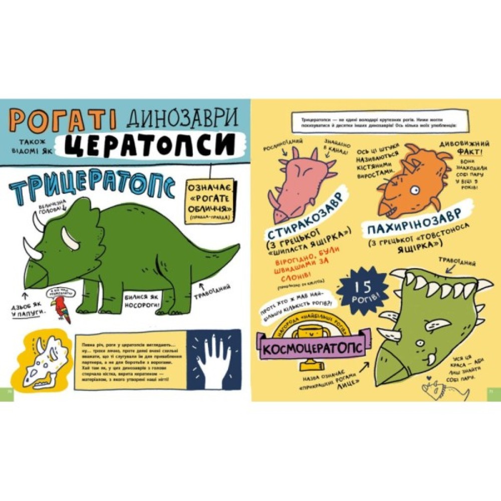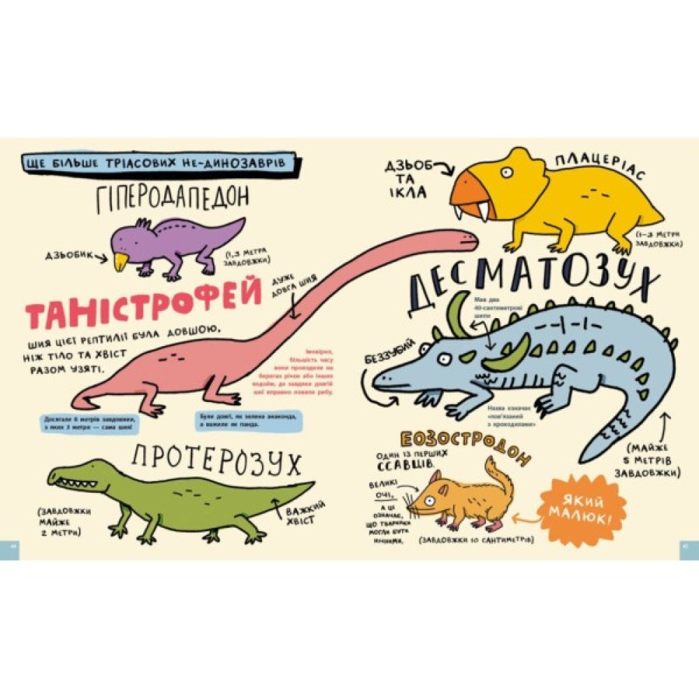 У семи розділах цієї книжки зібрано все найпотрясніше про динозаврів… і не тільки! Оповідь починається задовго до появи гігантських рептилій і не закінчується їх вимиранням. Адже всіляких доісторичних істот було безліч. Несподівані, дивні й давно відомі факти про них тут розказані в стилі коміксів. З яскравими ілюстраціями та ДИНОжартами.