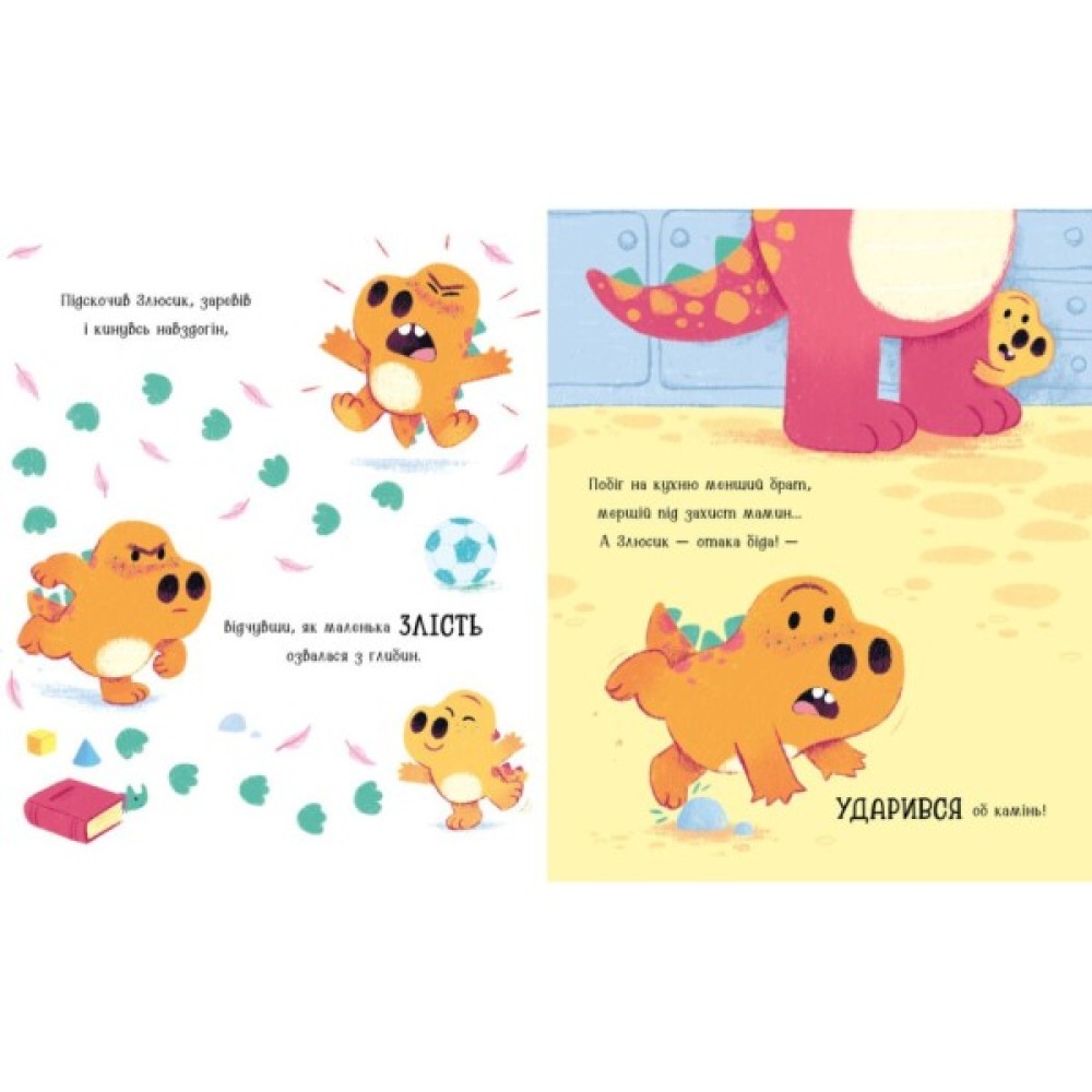 Одного ранку динозавр Злюсик прокидається від солодкого сну, радіючи новому дню, — аж тут усе йде трохи не так, як хотілося б. Усередині динозаврика наростає потужна хвиля рику і тупу ногами — і врешті виривається на волю! Але те, що погано почалося, необов’язково повинне закінчитися кепсько. Чи зможе наш динозавр знайти спосіб із лютого Злюся знову зробитися милим Злюсиком, по-новому поглянувши на те, що відбувається? Віршована казка про те, як важливо дивитися на речі під іншим кутом зору, щоб розвіяти досаду й роздратування.
