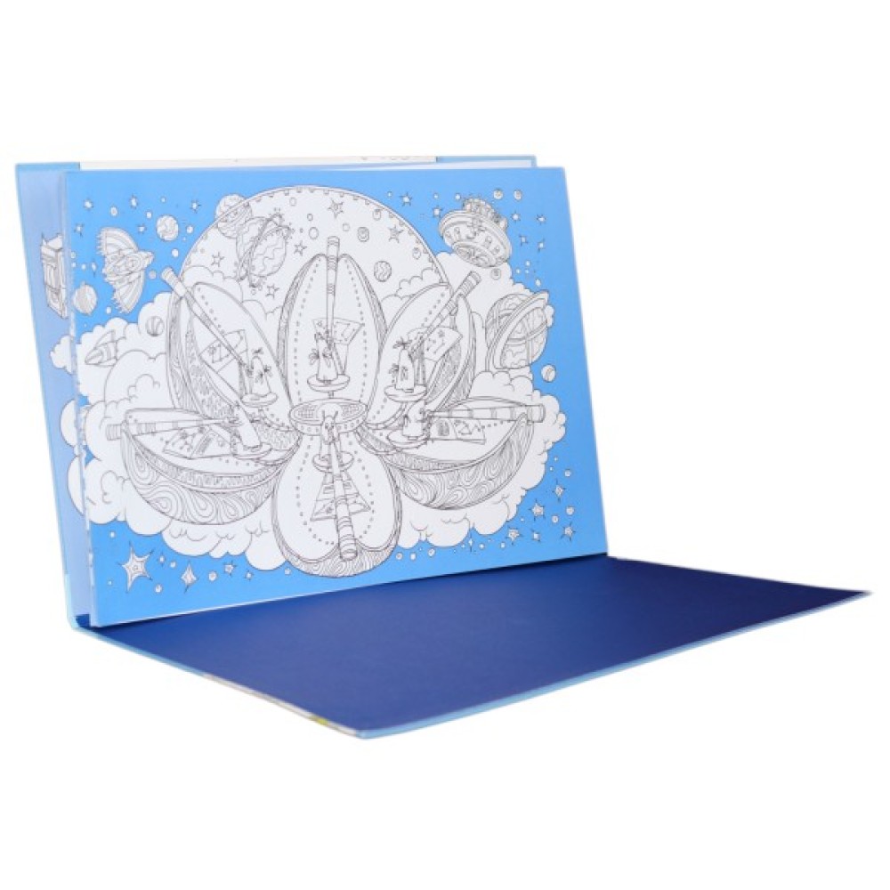 Незвична форма сприяє тому, щоб з головою зануритися у творчий процес: від розфарбовування химерних будівель та дивакуватих мешканців не доведеться відволікатися на перегортання сторінок.