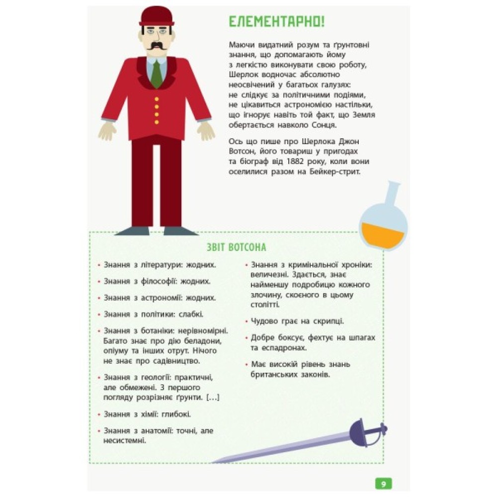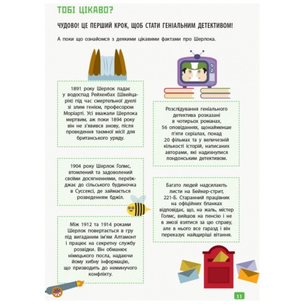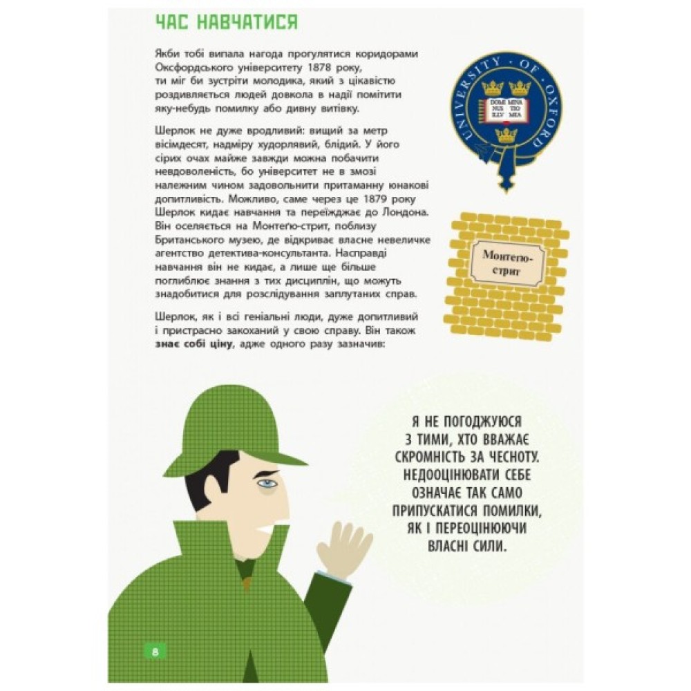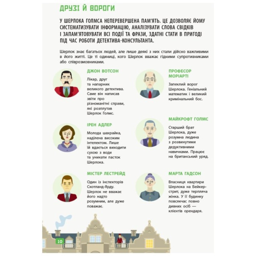 Шерлок Голмс вже давно припинив бути просто персонажем з книги. Він — взірець логіки, кмітливості та впевненості у собі. Автори цієї книги проаналізували твори Артура Конан Дойла, щоб з’ясувати — як працює мозок Шерлока Голмса. Їхні спостереження супроводжують корисні поради та цікаві завдання, що допоможуть юним читачам навчитися думати як найвідоміший детектив усіх часів.