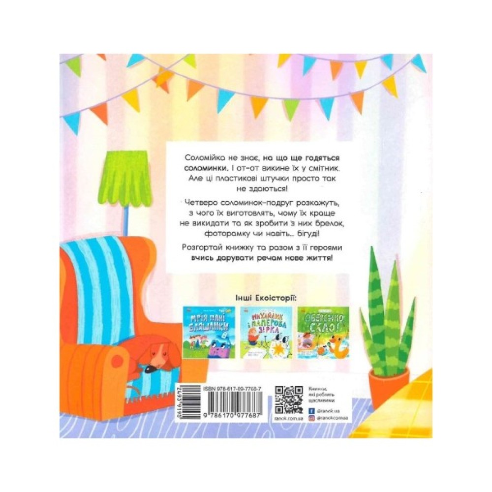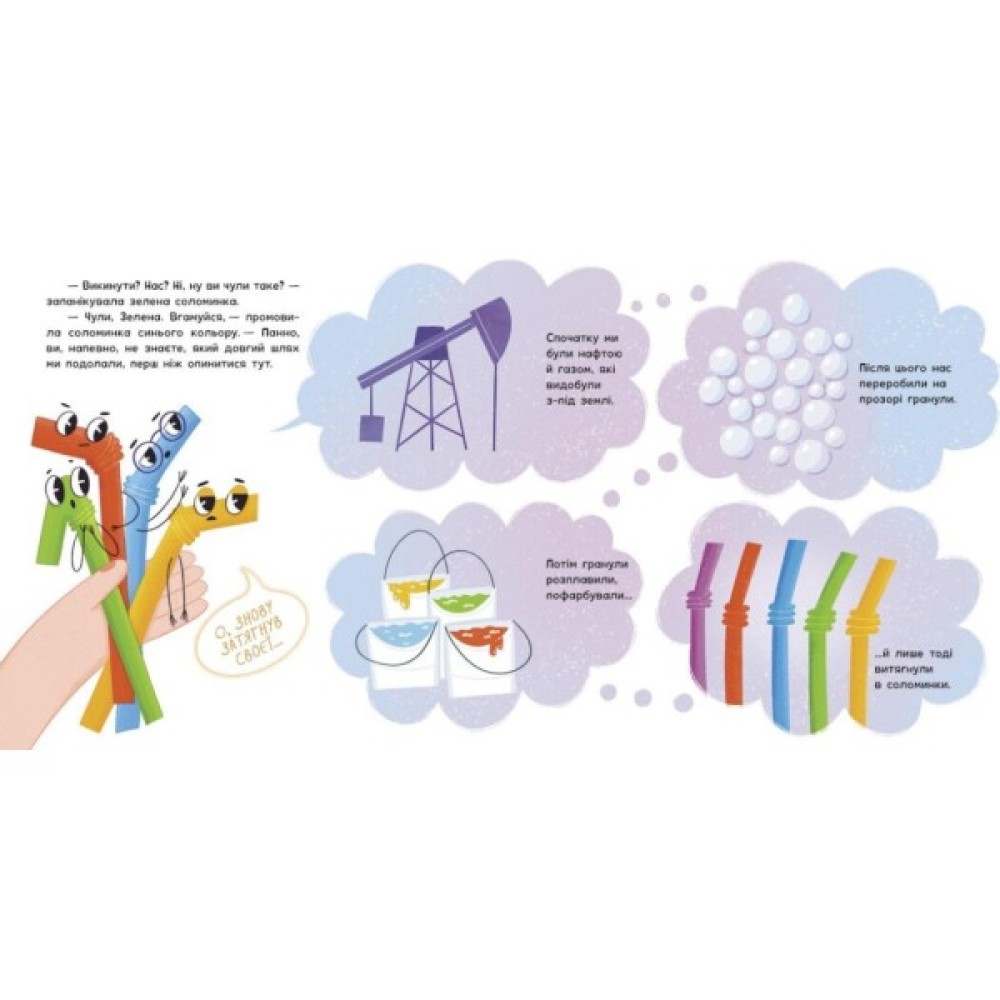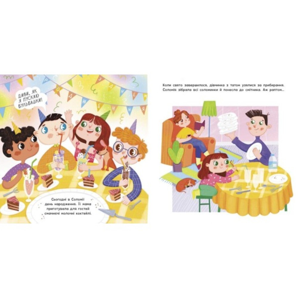 Четверо подруг-соломинок подолали довгий шлях, перш ніж потрапити на святковий стіл Соломійки. І цей шлях міг би закінчитися смітником, адже дівчинка не знала, що соломинки годяться не лише для пиття коктейлів...