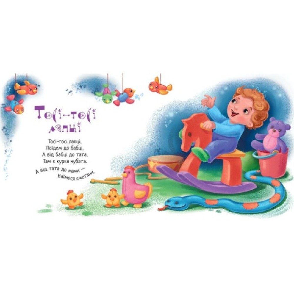 Збірка містить 8 забавлянок на різні теми: умивання, купання, потягунюшки, тупотушки, втішалочки, добре їмо, ігри з пальчиками тощо.