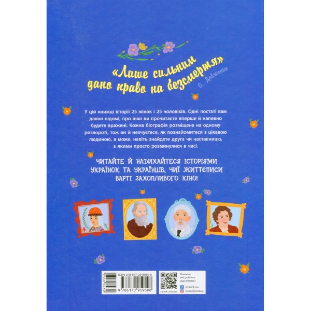 Ця книжка познайомить читачів із видатними українцями: чоловіками та жінками, які зробили вагомий внесок у розвиток нашої держави, науки та мистецтва.