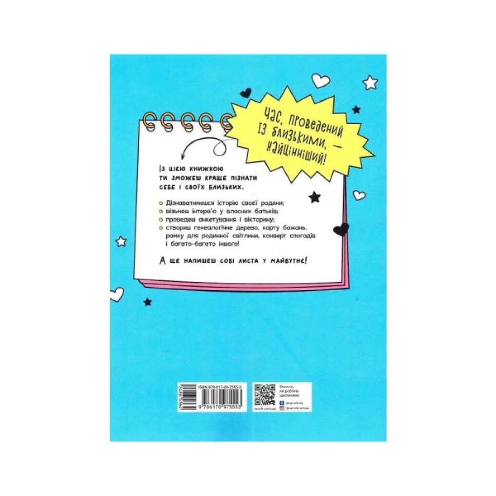 Заповнюючи барвисті сторінки з цікавими анкетами про себе й близьких, школярі й школярки зрозуміють унікальність своєї сім’ї.