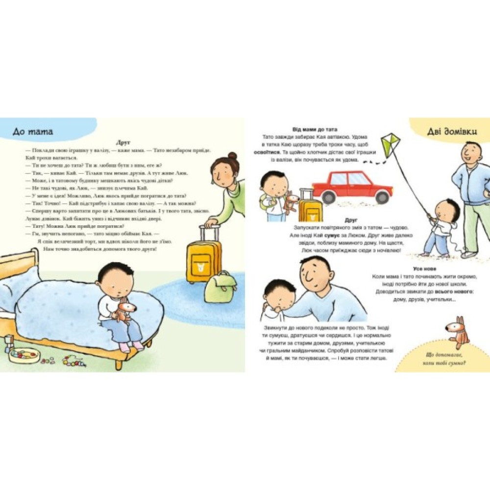 Особливості:Книжка на важливу й непросту в поясненні тему: розлучення батьків.