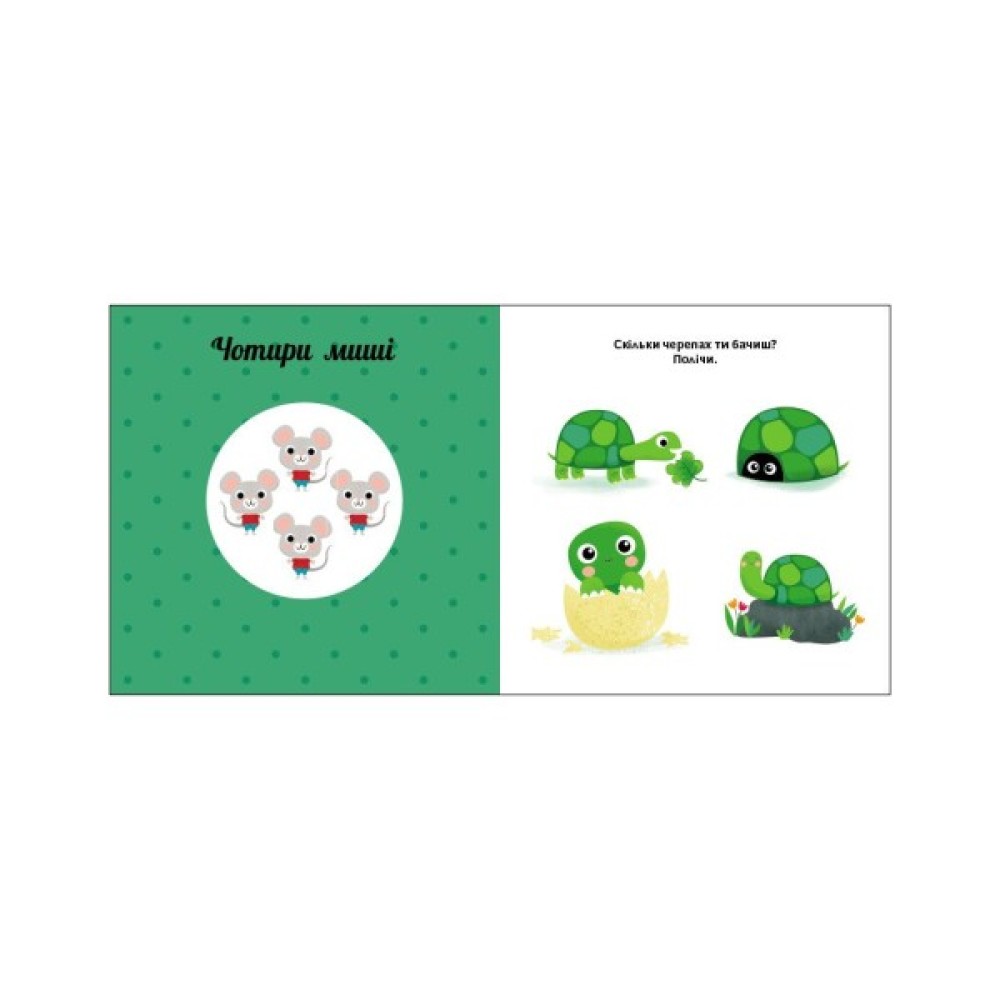 Обертай колесо та вивчай цифри та числа від 1 до 6! А на сусідній сторінці тренуйся, рахуючи кумедних тваринок на милих ілюстраціях. Нехай навчання буде цікавим і веселим!