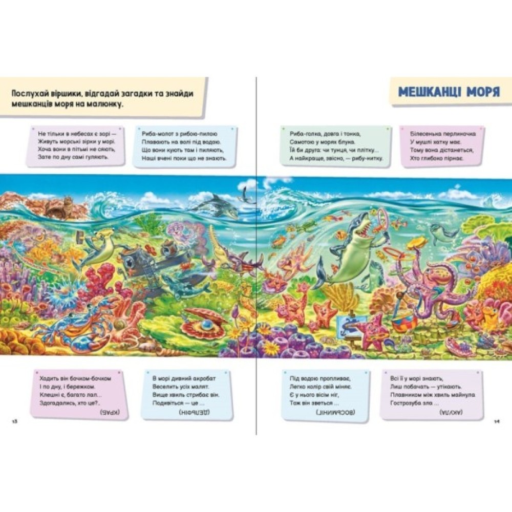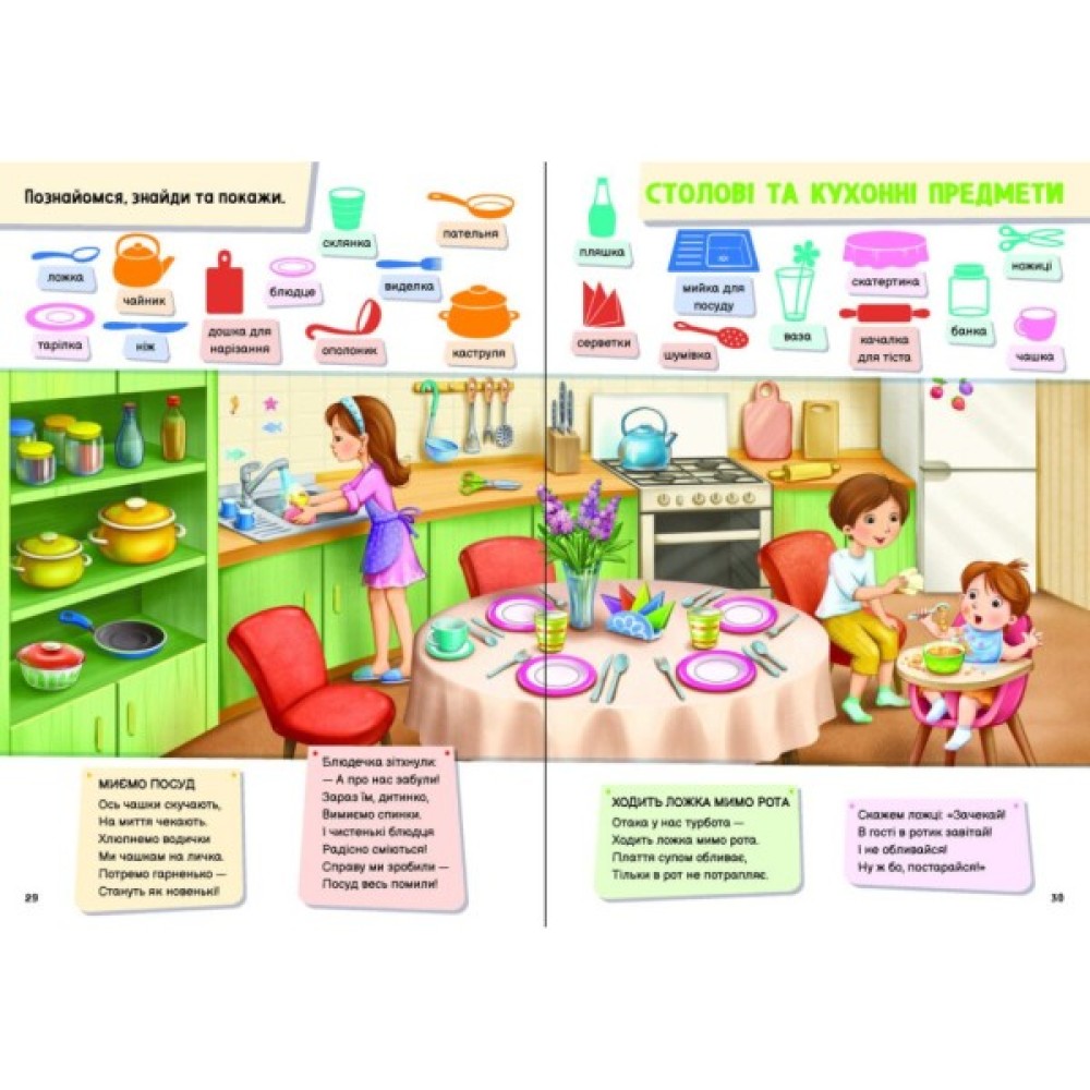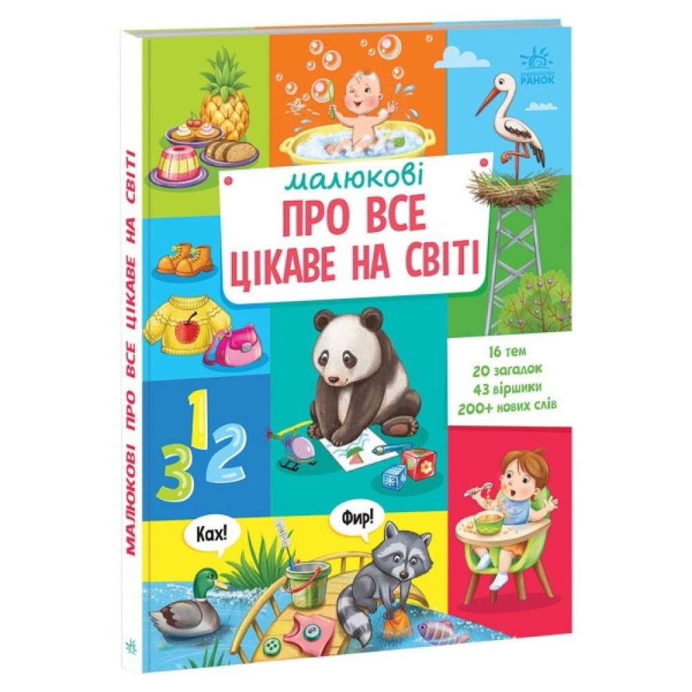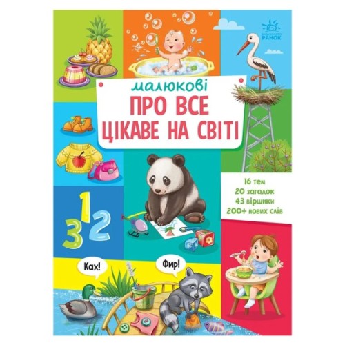 У цій енциклопедії малюк знайде великі яскраві ілюстрації, цікаві віршики та загадки, які дозволять йому з легкістю опанувати майже 300 нових слів з таких тем:
