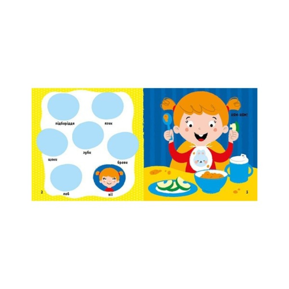Малюкові буде цікаво роздивлятися малюнки й називати, де рука, а де нога, де зубки, а де язик, хто плаче, а хто сміється, хто веселий, а хто сердитий…