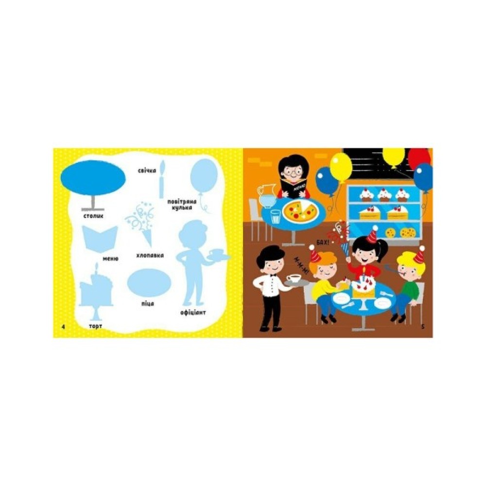 .«Віу-віу!» — поспішає на виклик пожежна машина. «Хлюп-хлюп!» — хлюпоче вода у фонтані. «Вж-жух!» — з’їжджає малюк із гірки на атракціонах. Місто таке галасливе й жваве. Познайомте малюка із предметами довкола. Називайте та запам’ятовуйте разом слова, розглядаючи яскраві ілюстрації у книжці. Клейте наліпки на тіні-силуети. Цікаво, яка сторінка стане вашою найулюбленішою?