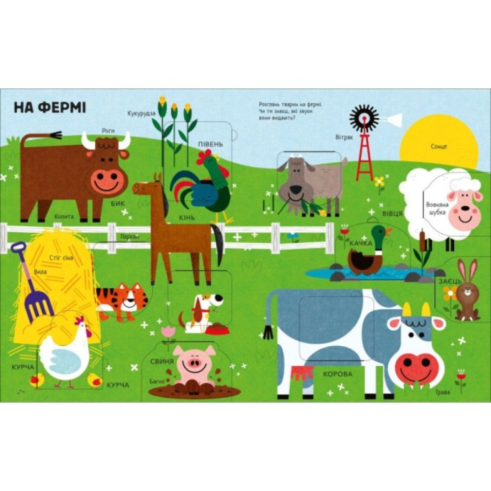 Ця сповнена сюрпризів і веселощів книга із цупкого якісного картону містить 80 віконечок, які дитина легко відкриє самостійно, й 200 важливих слів для запуску мовлення.