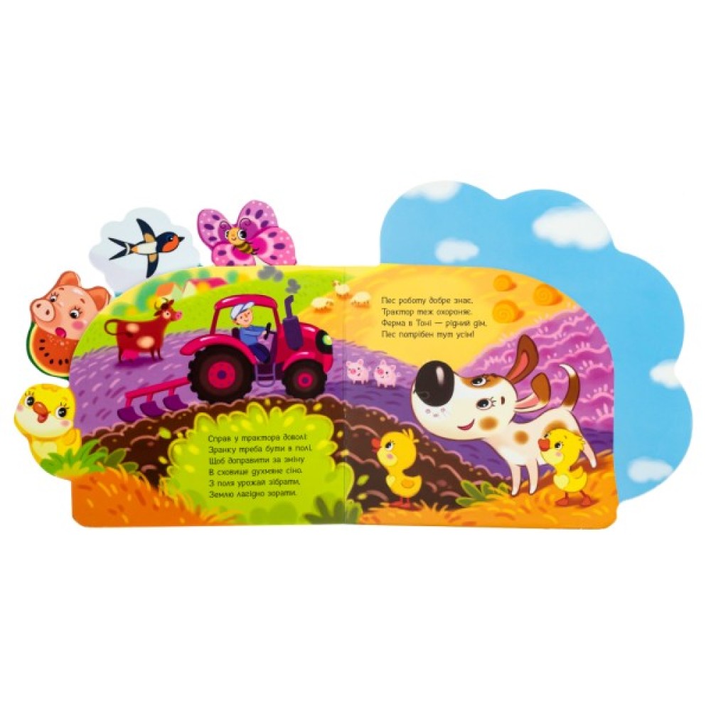 Книжечка «На фермі» розповість про песика-охоронця Тоні та його друзів — жителів ферми: корову, поросят, ягнят, каченят і навіть трактор, який працює в полі.