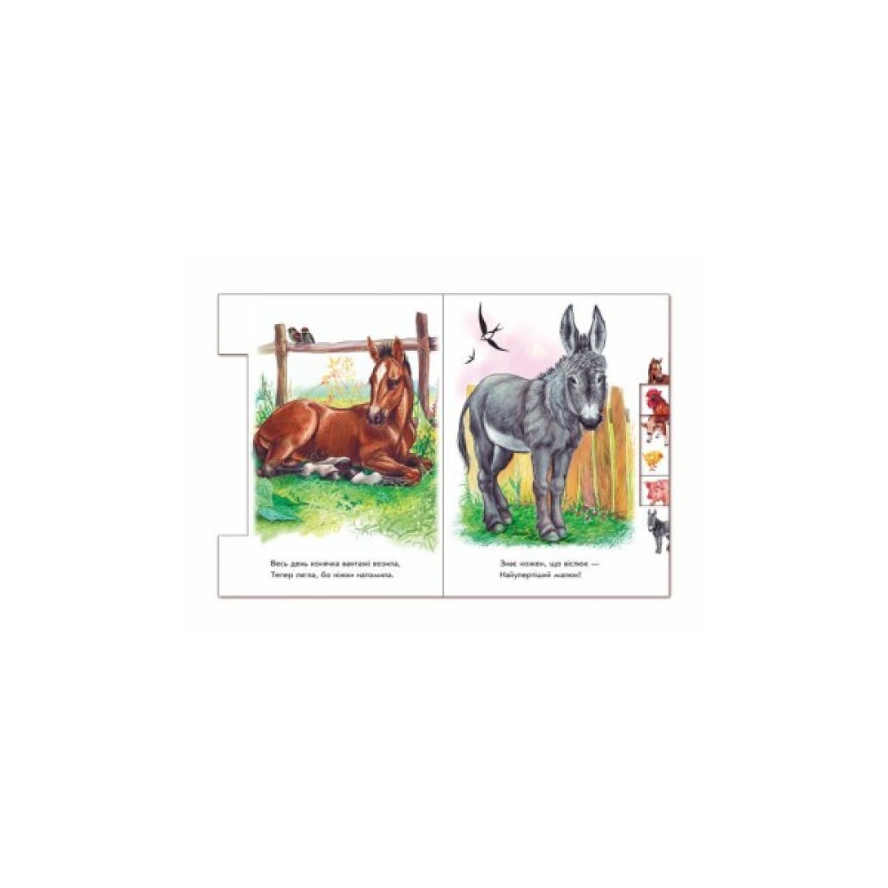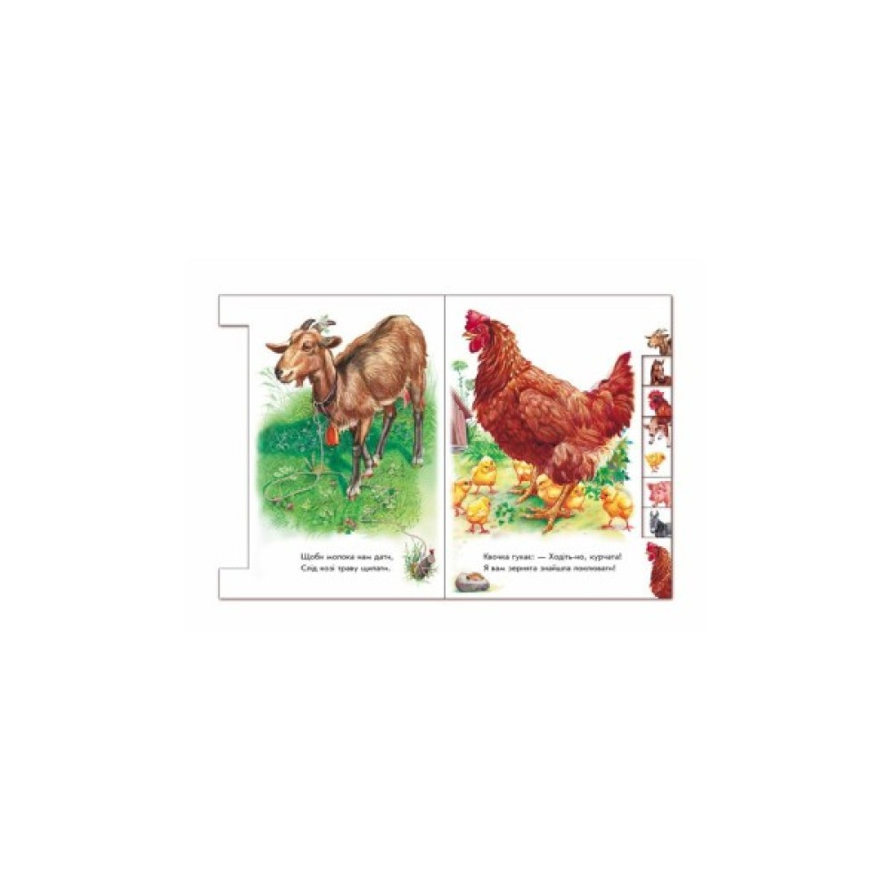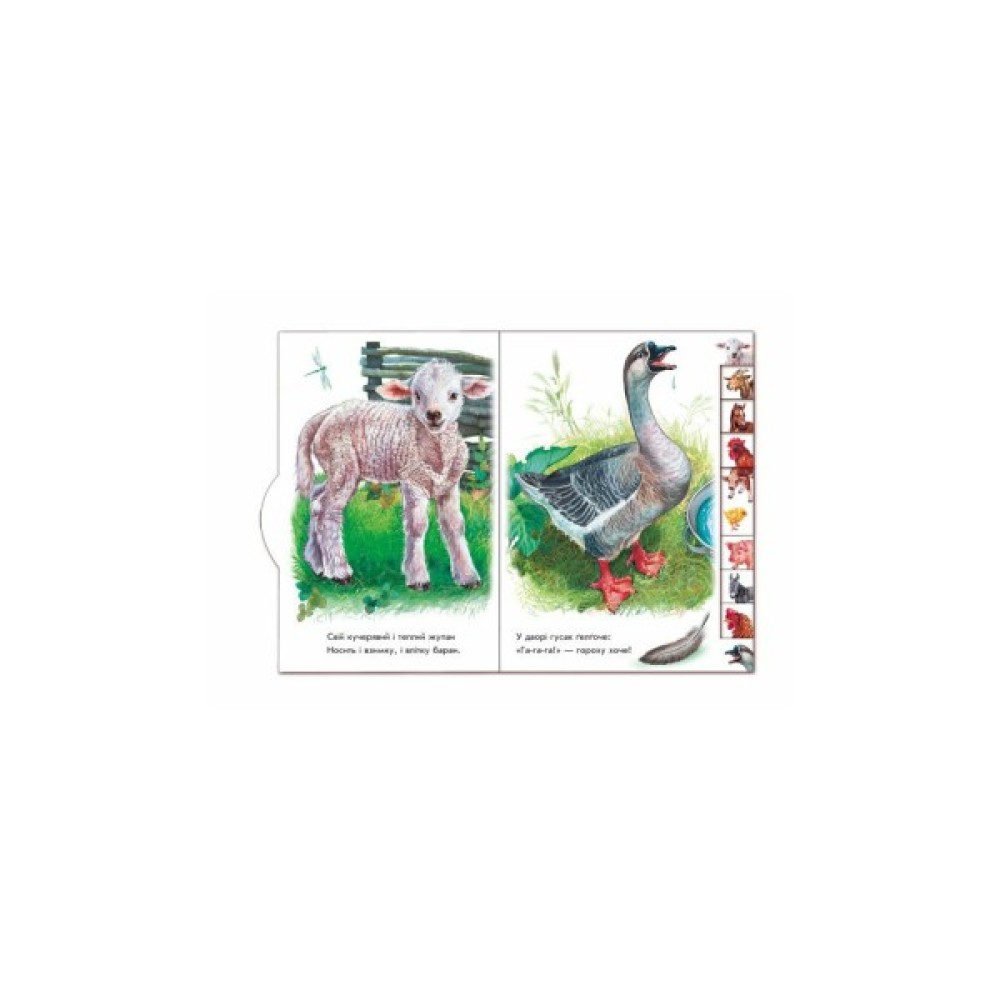 Натуралістичні ілюстрації для малят і добрі вірші про звіряток на подвір’ї.