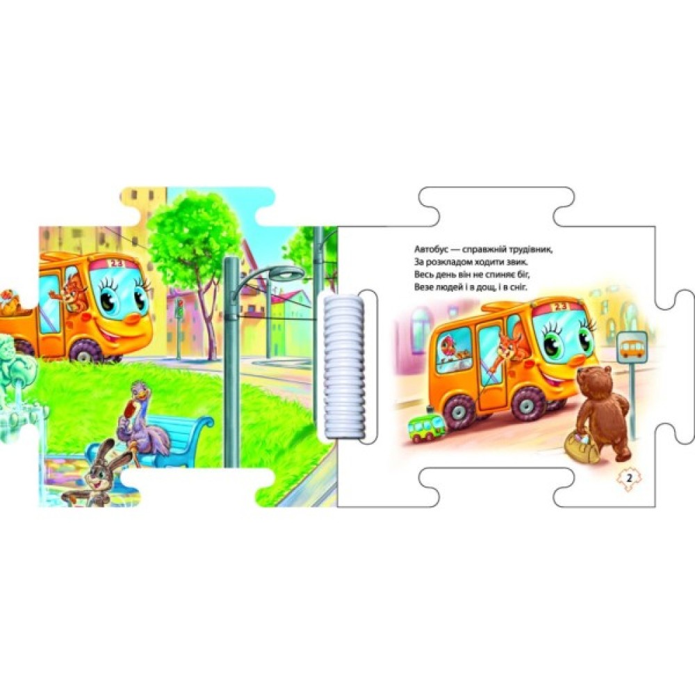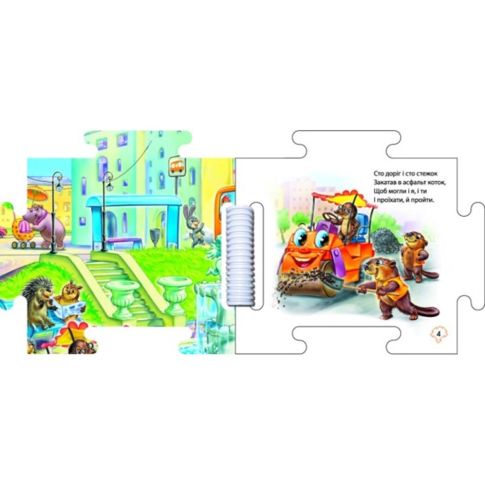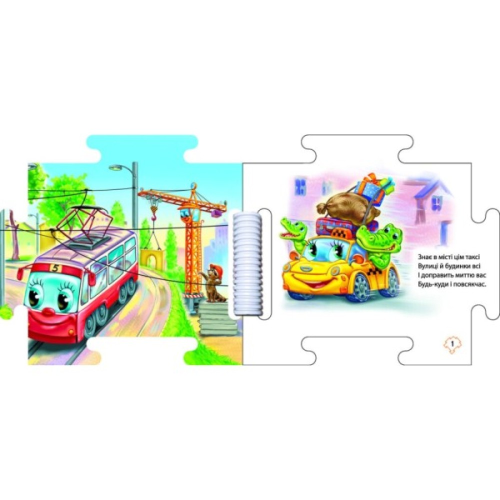 Сім чудових віршів про машини у місті. Вісім великих цупких та зручних для малюка пазлів, що складаються в картинку-панно розміром 65х30см. Й це ще не все, бо аналогів такій книзі в Україні немає.