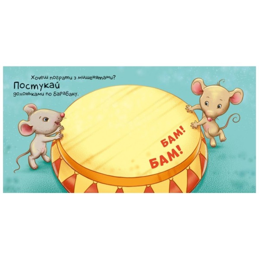 Малюк виконуватиме прості дії, до яких спонукає сюжет: постукає в барабан, понатискає на клавіші, поаплодує артистам, накриє мишеня долонькою, захищаючи від кішки, а потім пошарудить за сторінкою книжки, щоб відвернути увагу кішки.