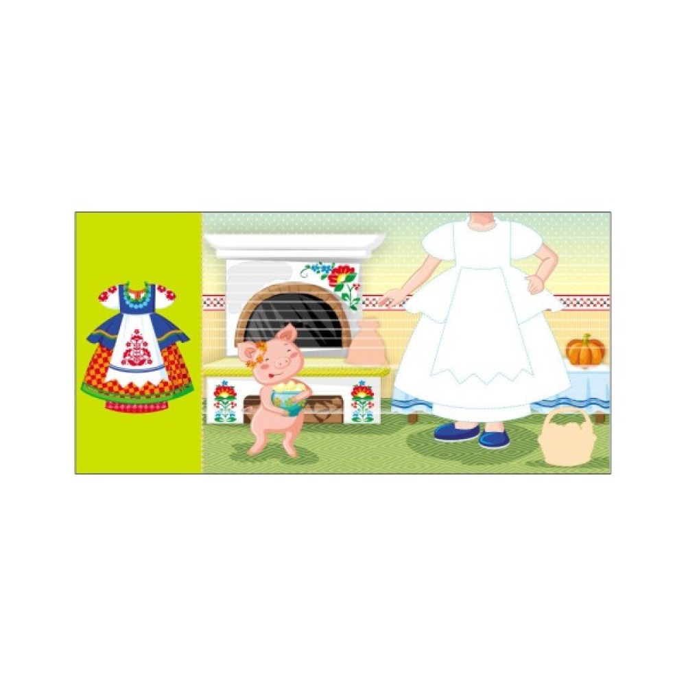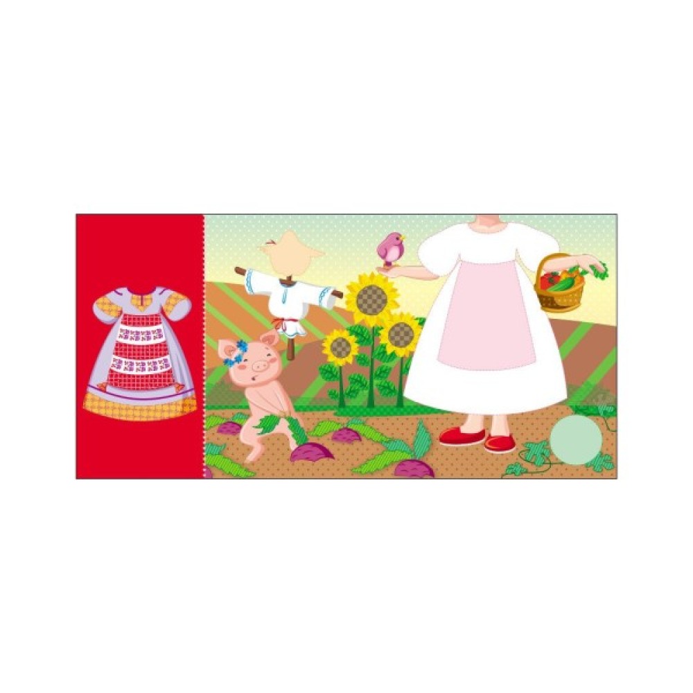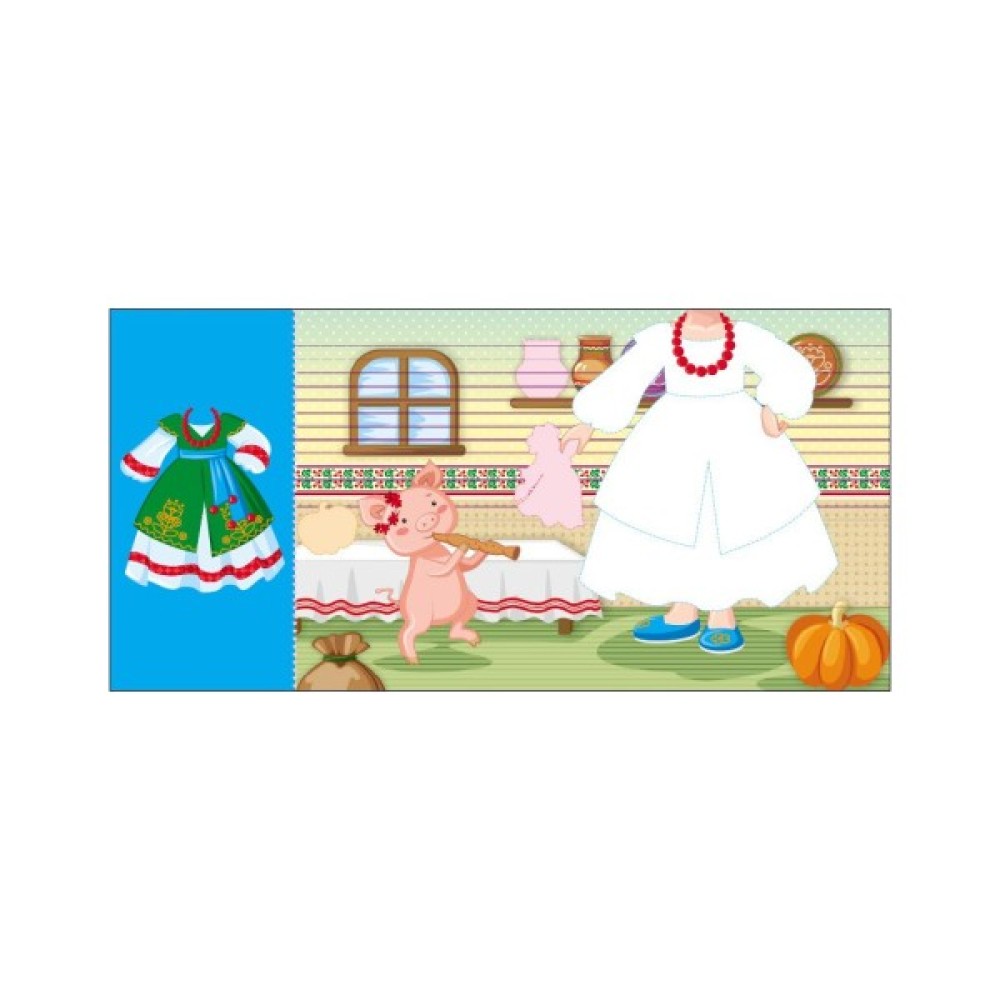 Обкладинка кожної книжки має оригінальну вирубку у вигляді дівчинки-ляльки. А сторінки — це її вбрання. За допомогою кольорових олівців, фломастерів та доданих до книжки наліпок дитина зможе розмалювати наряди для ляльки. Зразки суконь подані поруч на сторінці.