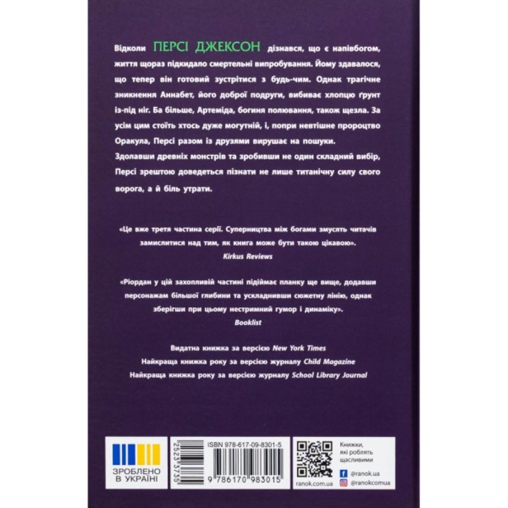Але кому до снаги ув’язнити могутню богиню? Чи жива Аннабет? І що це за страшне чудовисько, яке має стати кінцем Олімпу?