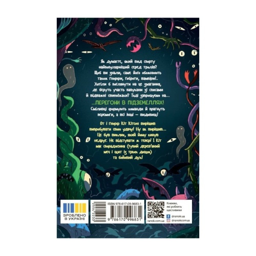 У містечку Гротвіль, що на материку Зерб, відбудуться «Випробування у Підземеллях». Це змагання з улюбленого, хоч і небезпечного, спорту тутешніх мешканців. І ґнорф Кіт, справжній фанат цієї гри, вирішує взяти участь. Але для початку йому знадобиться зібрати команду таких само сміливців. Ця історія неодмінно сподобається молодшим школярам! Вона про те, що кожен провал може обернутись удачею, а кожне вміння – цінне й стане в пригоді, навіть якщо це просто вміння просто чаклувати піщані замки. Словом, можливо все!