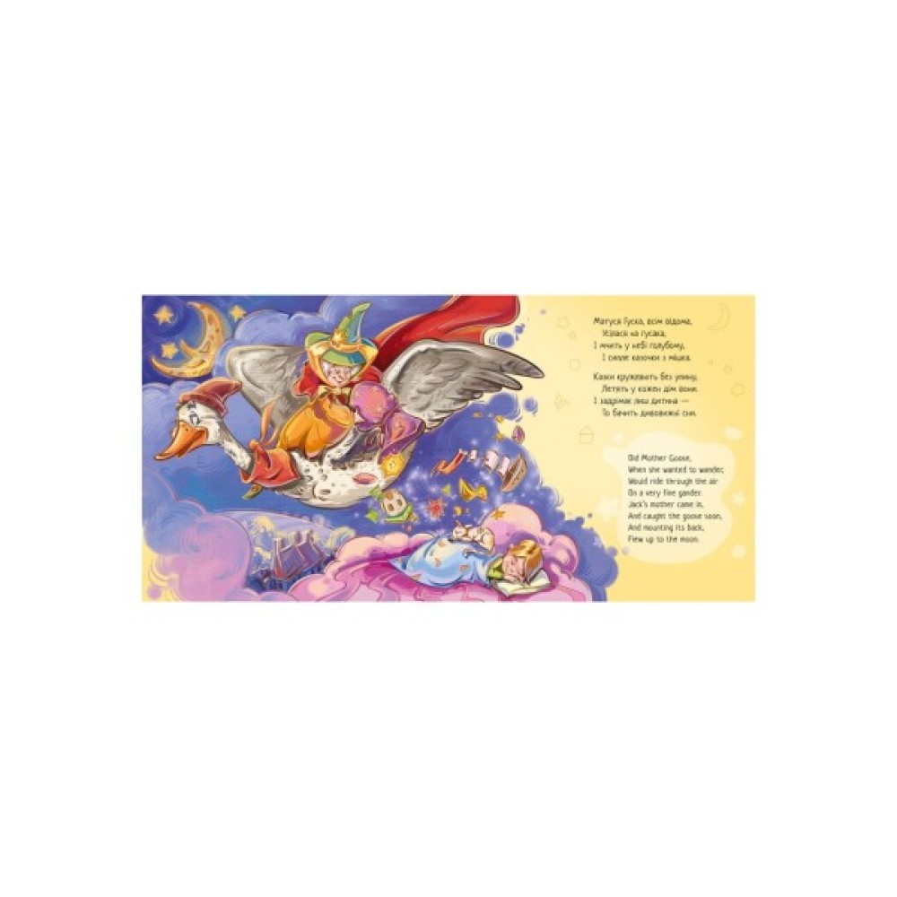 Книжка «Пісні Матінки Гуски» ознайомить дитину з найпопулярнішими англійськими дитячими віршами, пісеньками, лічилками. Веселі, чудернацькі, з вигадливими сюжетами й абсурдними деталями віршики порадують вашу дитину. Кожен вірш наведено українською мовою і мовою оригіналу — англійською. У перекладі збережено колорит і тонкий гумор, а ілюстрацій підтримують пустотливий настрій віршів. Ця книга неодмінно порадує вас і зацікавить вашу дитину.