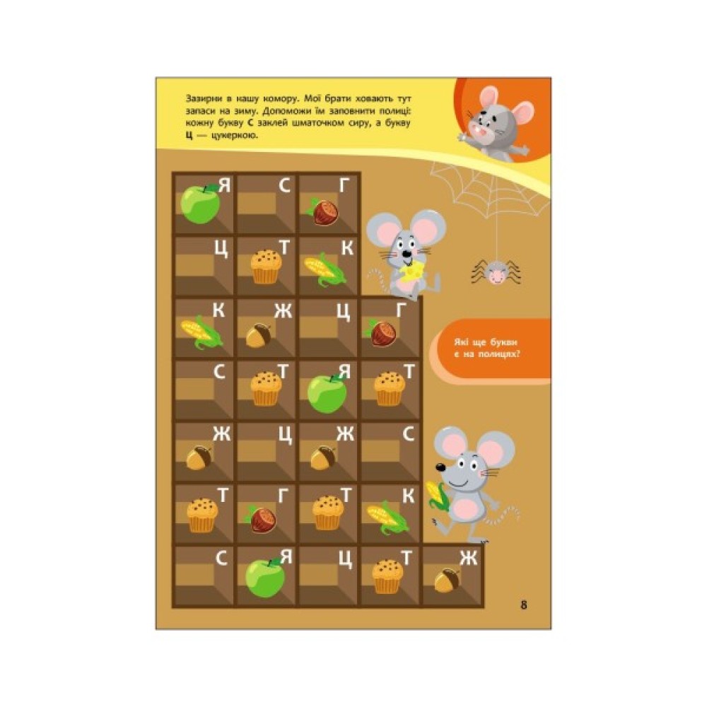 «Учуся з мишеням» Книжки серії «Пізнавайчик» — це ефективний розвиток дитини в ігровій формі за допомогою наліпок. Книга «Учуся з мишеням» має свого кумедного героя. Він не тільки розповідає дитині історії про себе, а й пропонує їй долучитися до цікавих завдань. Сторінка за сторінкою дошкільник тренується у математиці, логіці, читанні, розширює уявлення про світ природи, а також розвиває дрібну моторику. Додатковим бонусом за QR-кодом— є пізнавальні цікавинки про тваринку, яка є героєм зошита. Корисно для дітей 3-5 років.