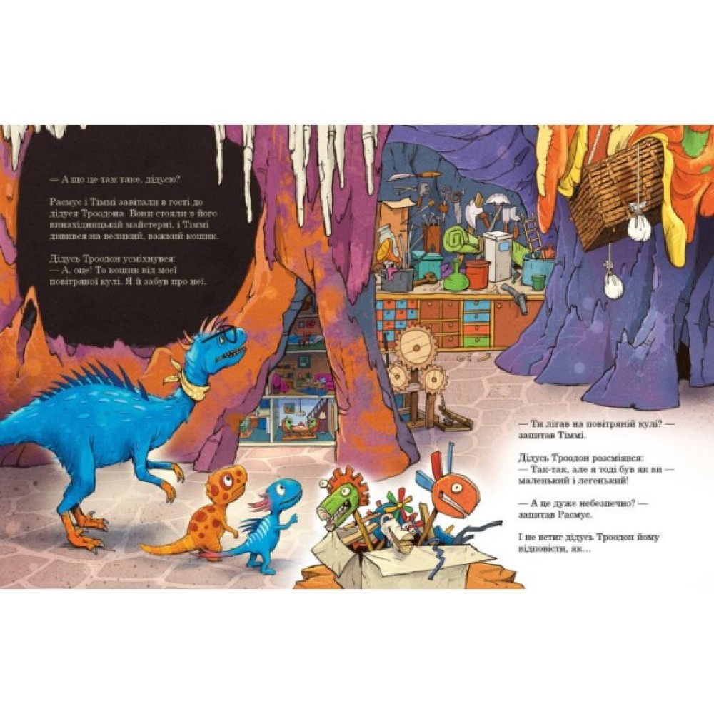 Одного дня, коли Рамус та Тіммі завітали в гості до дідуся Троодона, йому саме надійшов лист. «У гнізді на високій сосні покинуте яйце», — писала тітонька Троодон. Що ж робити? Але ж у дідуся Троодона є повітряна куля! Треба летіти та врятувати яйце. Хіба що дідусь заважкий для такої подорожі… Отже, Расмусу та Тіммі доведеться впоратися самотужки, а ще не потрапити до пащі летючого ящера та… подолати страх висоти.