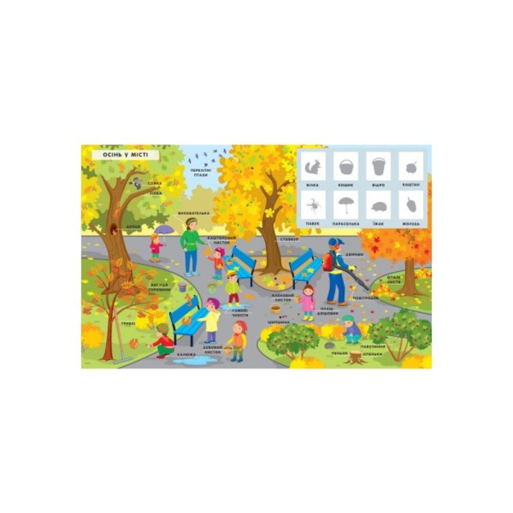 - попросіть малюка знайти до кожної сторінки відповідні наліпки;