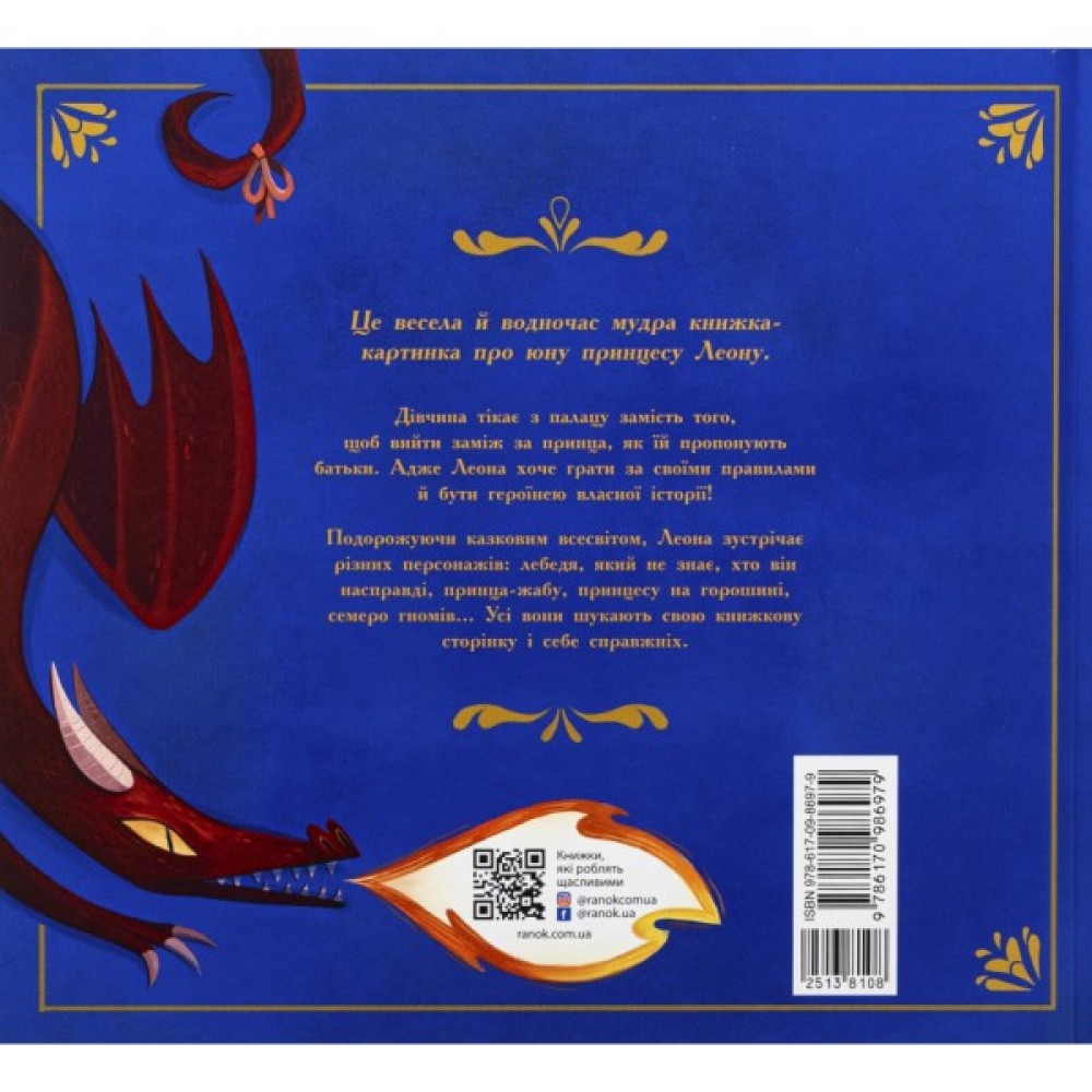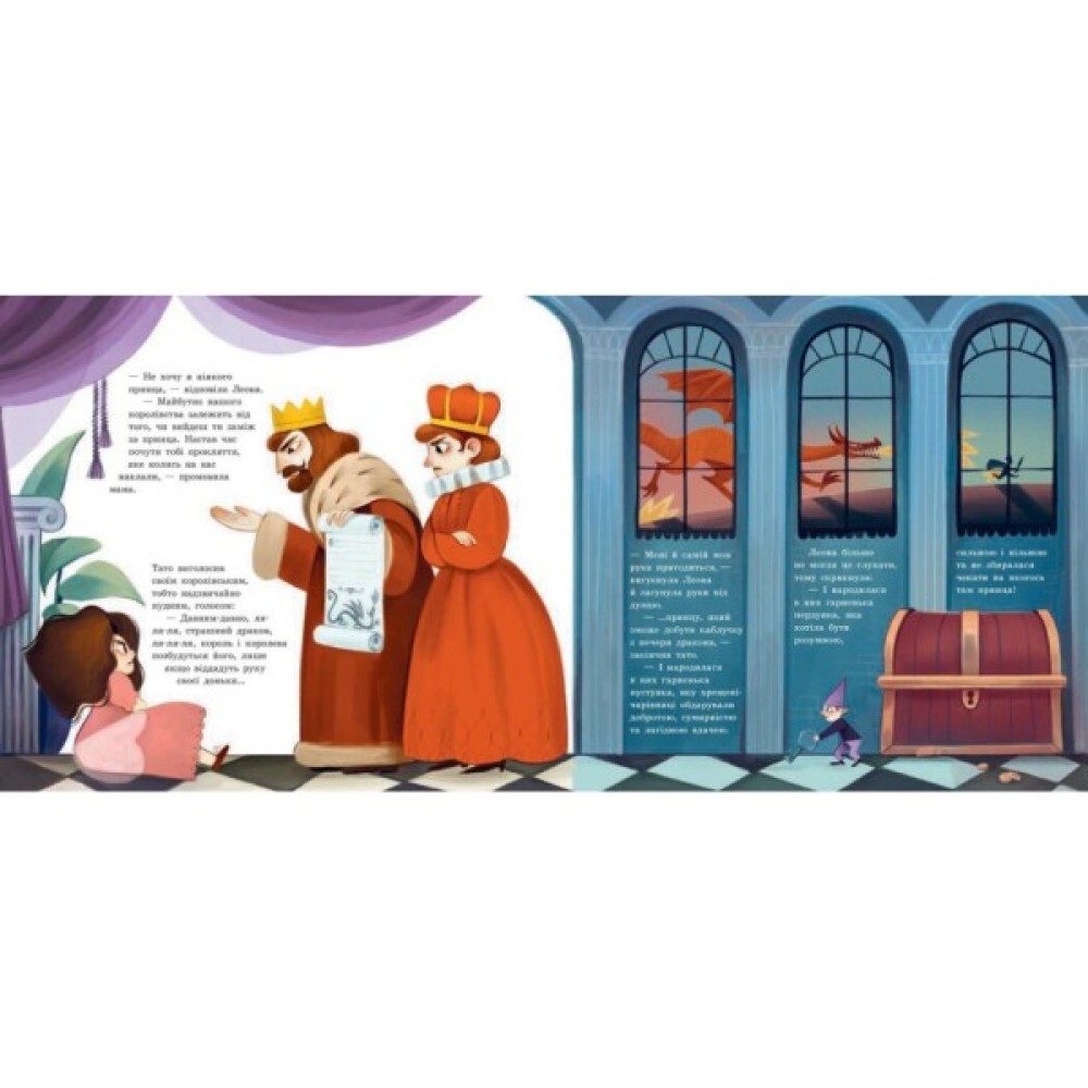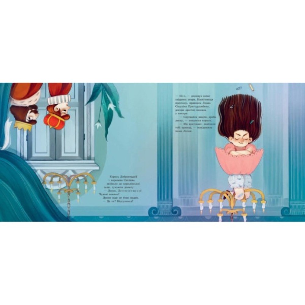 У цій казці все догори дриґом. Тут принцеса не сидить сумирно, а висить на люстрі. І казка, яку Леоні пропонують король і королева, їй не до душі — дівчина хоче стати розумною, сильною і вільною, а не слухняною і нещасною.