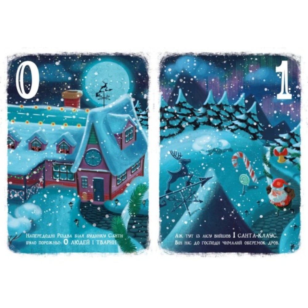 "Різдвяна лічба" — книга подарункового формату зі стильними ілюстраціями Катерини Підлісної. Кожна сторінка присвячена певній цифрі, на сторінці — відповідна кількість предметів різдвяно-новорічної тематики. Дитина розглядатиме лічбу і не просто вивчатиме цифри — вона з задоволенням буде перераховувати святкові емоції, збагачувати свій словниковий запас, яскравіше переживатиме різдвяні та новорічні відчуття.
