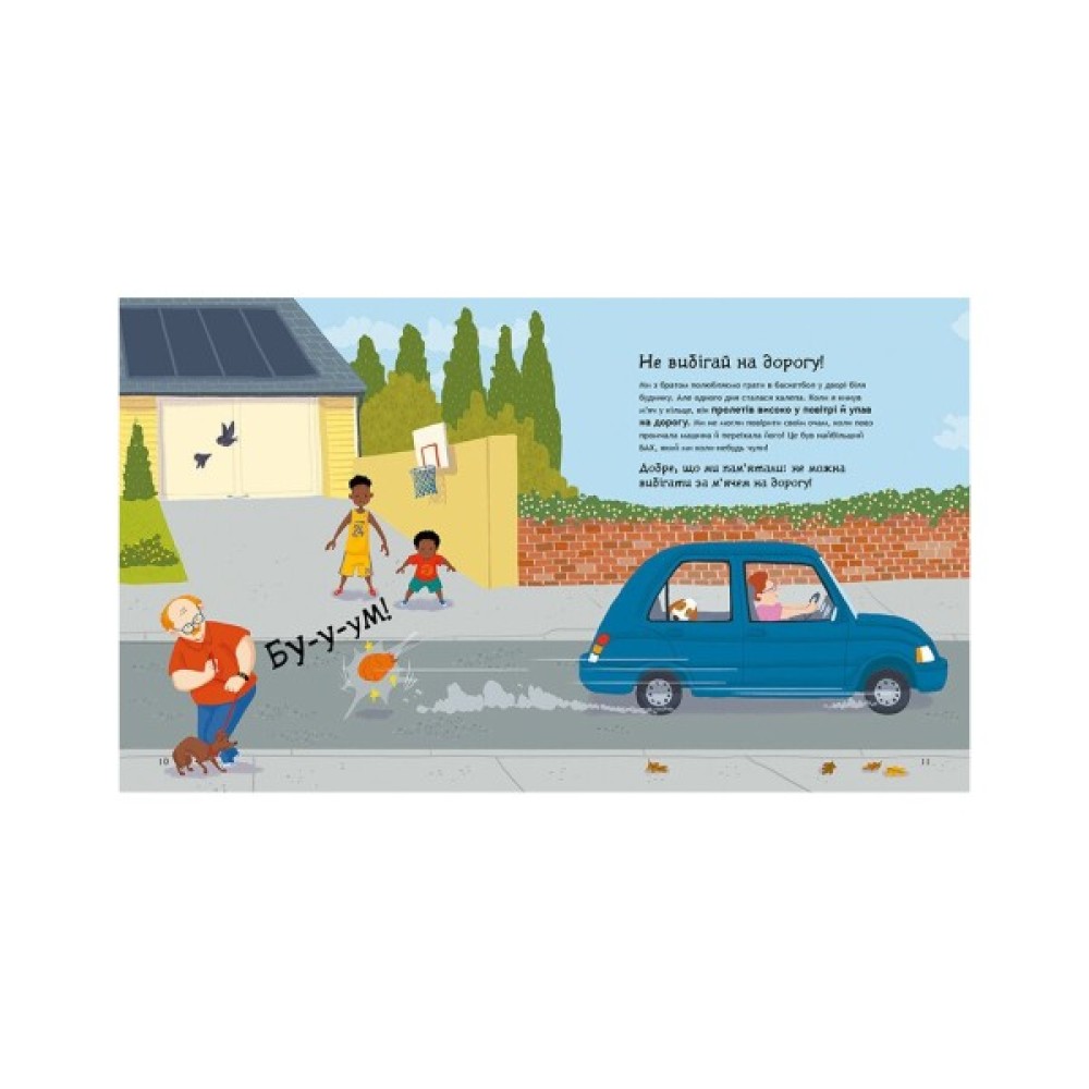 Цікава й водночас корисна книга створена, щоб допомогти дітлахам засвоїти основні правила безпеки в повсякденному житті. На простих історіях і прикладах інших дітей пояснюється, як варто поводитись біля дороги, на пляжі, в басейні, в автомобілі, на природі й удома. Легкі для розуміння поради допоможуть маленьким читачам зрозуміти, як діяти в різних ситуаціях. А головне — як почуватися в безпеці! Книга не лише вчить обережності й відповідальності, але й мотивує дбати про себе й оточення.