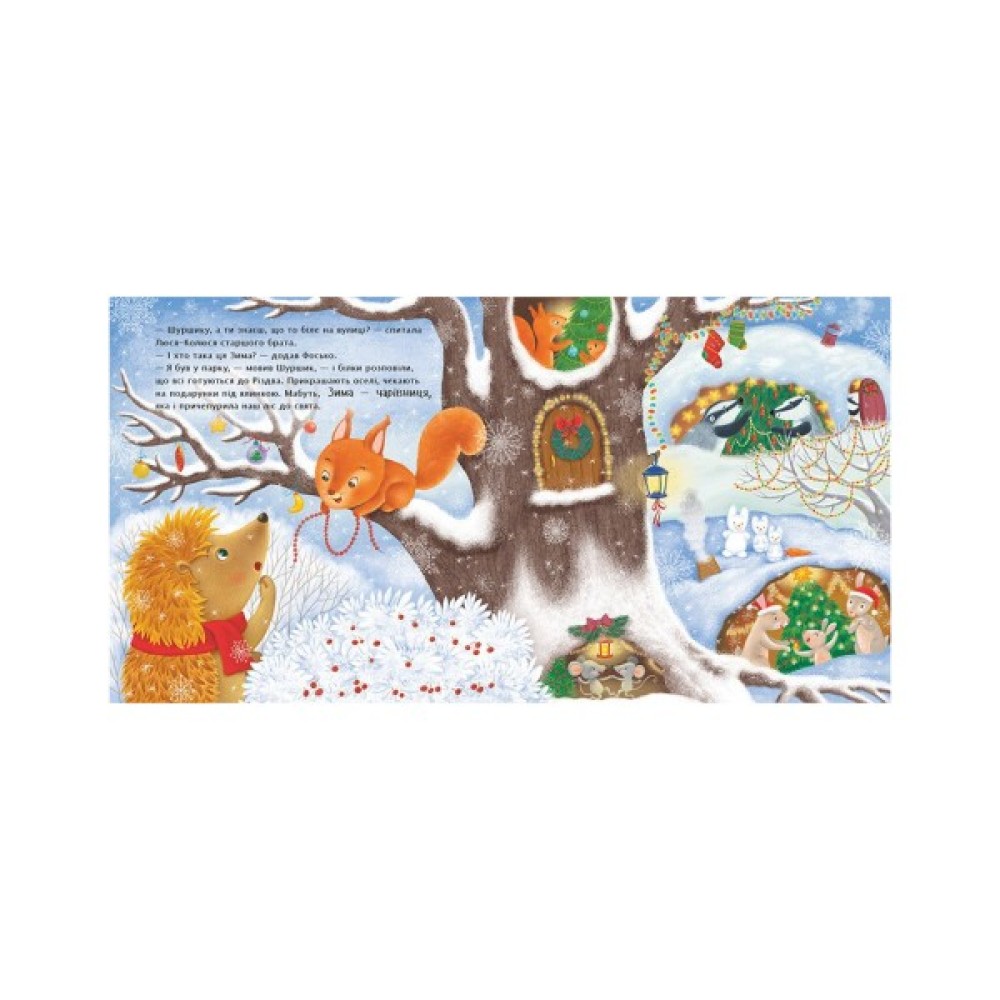 Цього року їжачок Фось-Фось уперше побачив зиму! Тепер малюк дивується: що ж це за білі крихти сиплються з неба? І чому надворі пощипує щічки? І де та ялинка, під якою ховаються подарунки? Нумо разом з малим Фосем милуватися цією сніжною й по-справжньому неповторною порою року. Зворушливе оповідання Наталі Мусієнко про маленького їжачка Фось-Фося торкнеться серця кожного. А казкові ілюстрації Юлії Мітченко подарують дітлахам справжнісінький зимовий настрій.