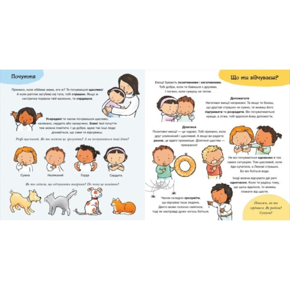 - Книжка на важливу й непросту в поясненні тему: розуміння своїх та чужих емоцій.