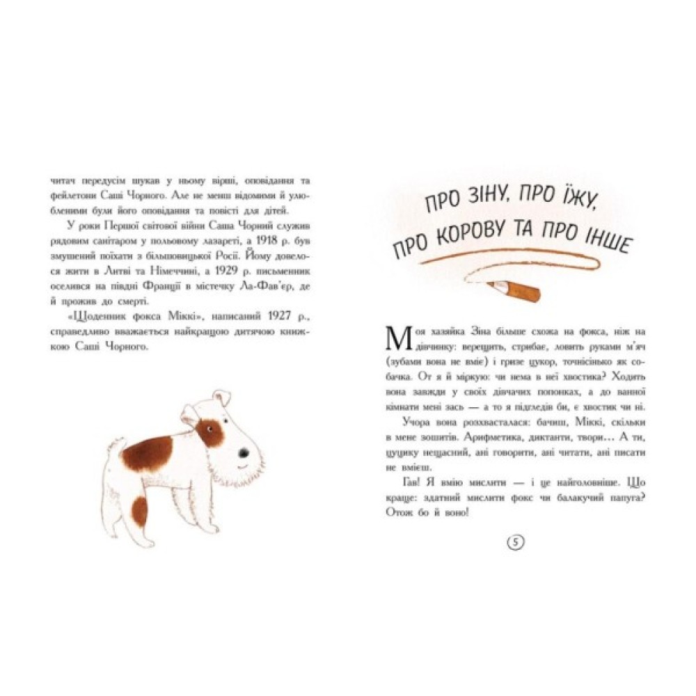 «Щоденник фокса Міккі» написаний від імені фокстер’єра. Так-так, це перший грамотний собака, який уміє писати. Він розповідає про своє буденне життя, про переїзд до Парижу, про море, відвідування зоопарку та найпершу морську прогулянку. Не все подобається песикові, але його допитливість перемагає страх, і він і далі готовий пізнавати цей дивовижний світ.