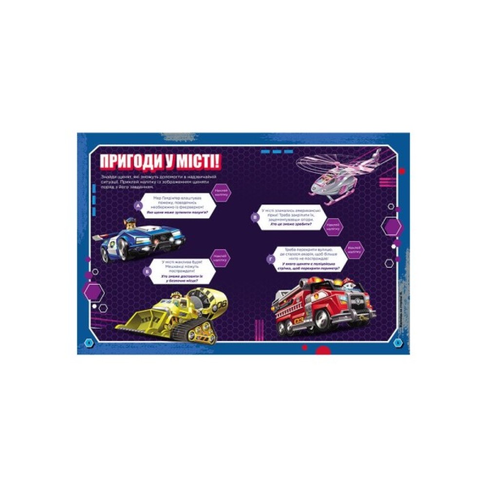 Стань частиною великого Міста Пригод! Вигадай власну цікаву історію разом із Гончиком, допоможи щенятам дістатися нової штаб-квартири, намалюй свій жетон та виконай усі завдання у книжці!