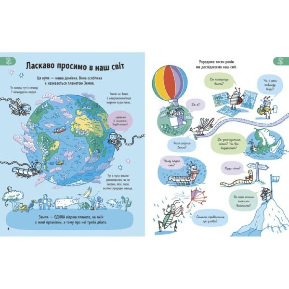 Ваша дитина мріє дізнатися про світ усе? Тоді ця книжка стане її першим компасом! Тут малеча зануриться у Світовий океан і познайомиться з його мешканцями, відвідає всі континенти й пізнає особливості кожного, дізнається про країни та міста, ліси й гори. У книжці знайдеться все, що допоможе дитині осягнути наш світ: від погоди в різних частинах Землі до збереження довкілля.