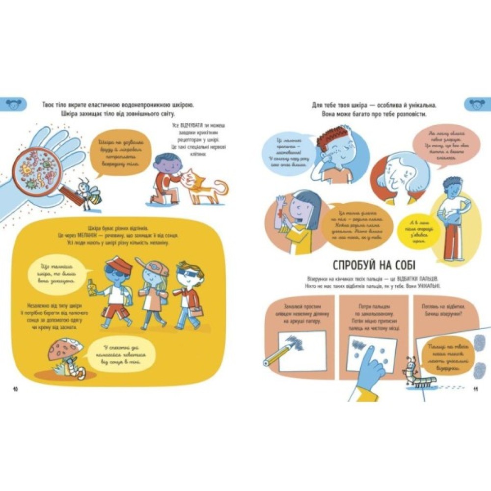 Дізнайтеся, на що здатне людське тіло, для чого потрібні органи і ще багато неймовірних фактів, що допоможуть дитині пізнати себе. Розгортаймо книжку — і гайда!